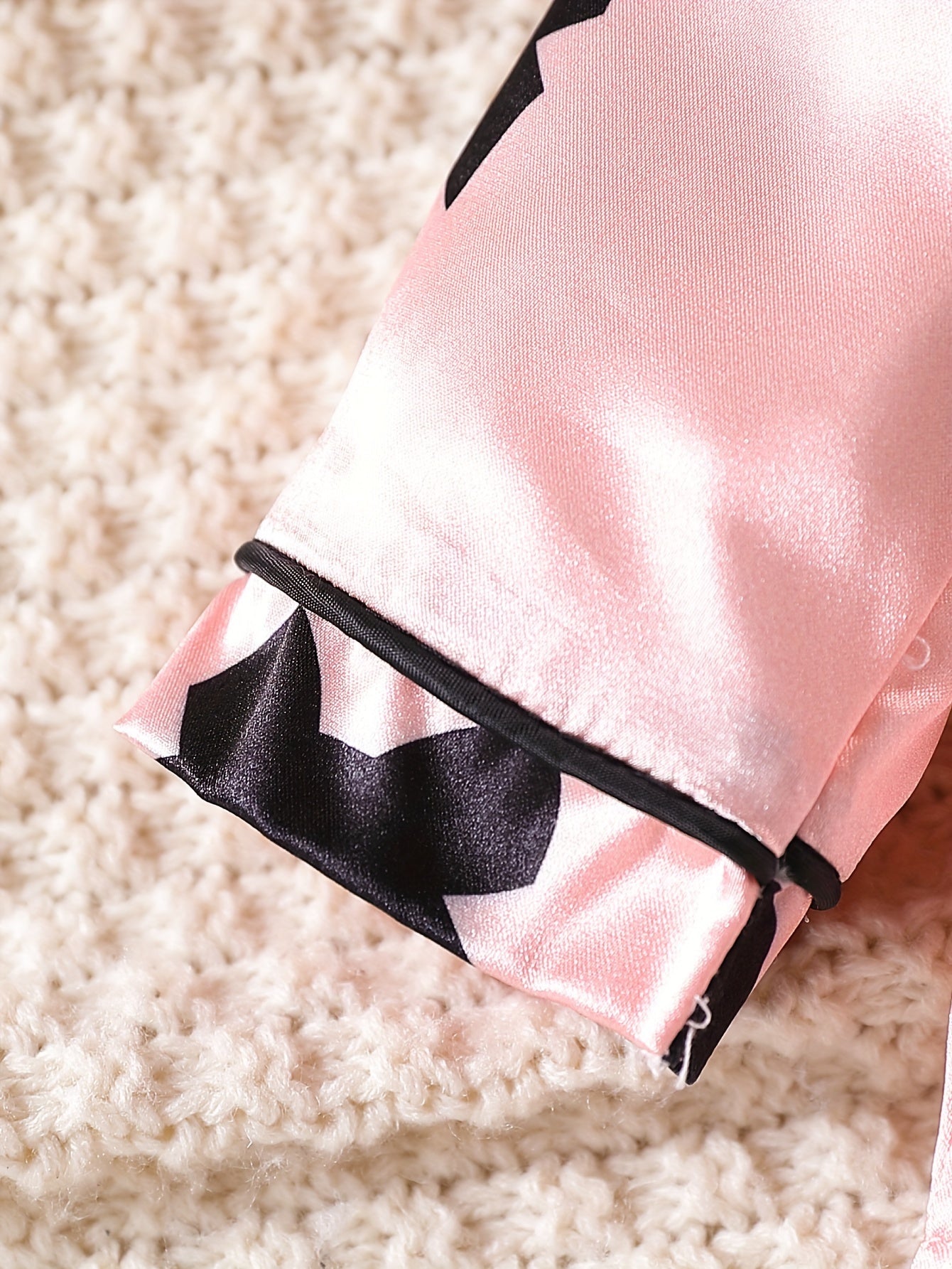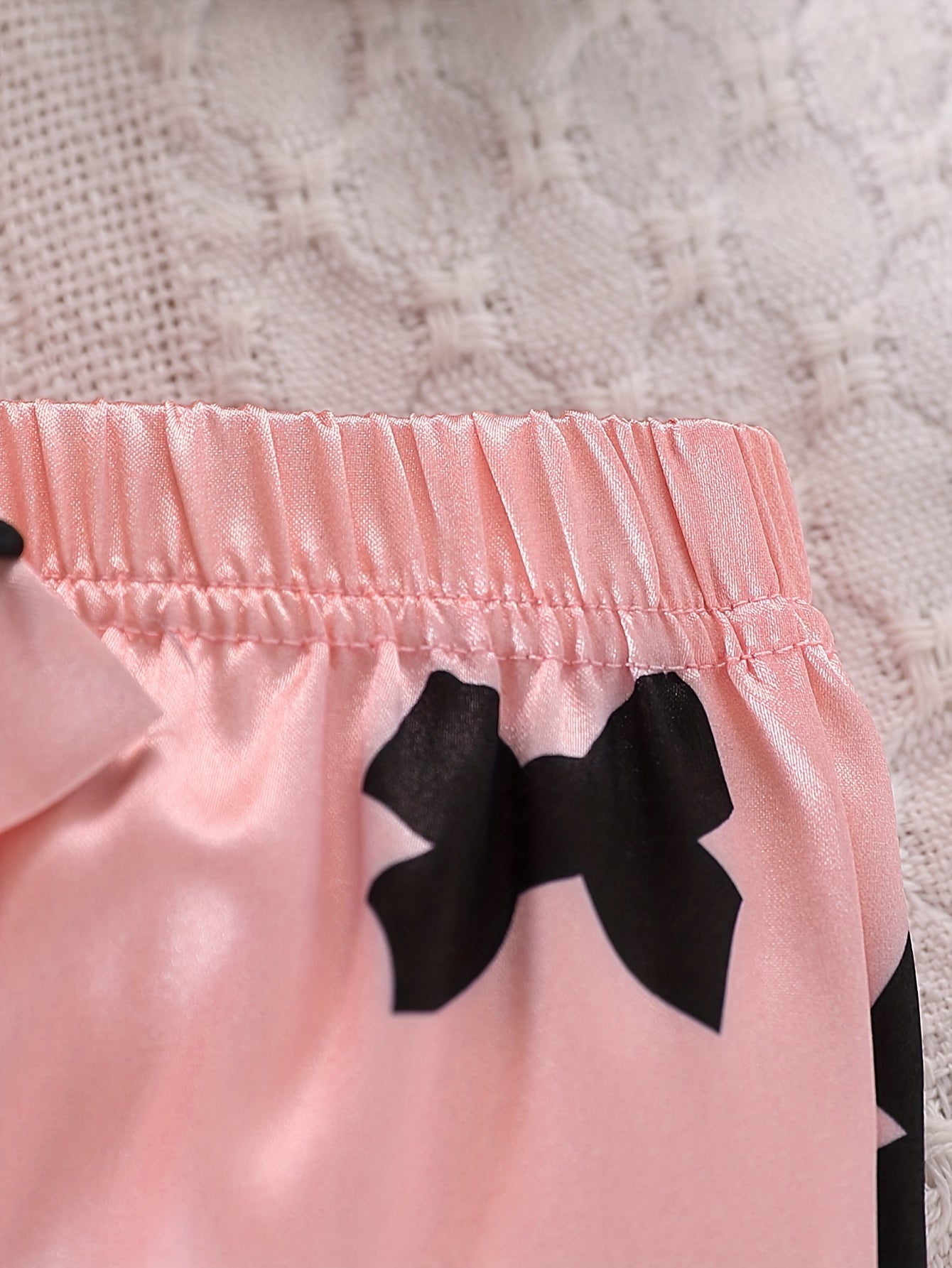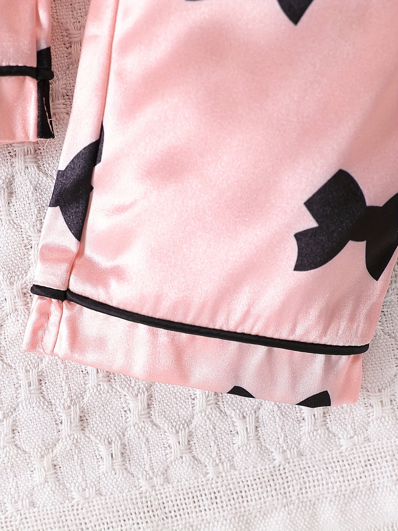 Baby Girl's Elegant Pajama Set, Cute Bow Print Lapel Long Sleeve Shirts & Trousers