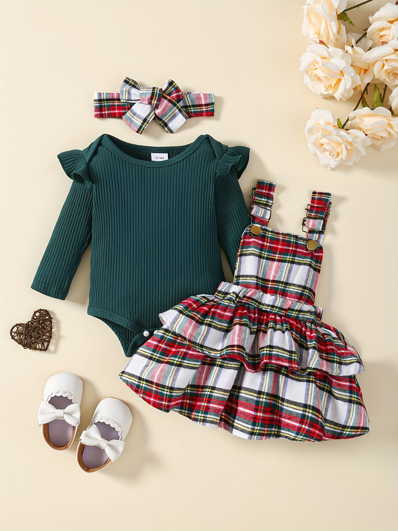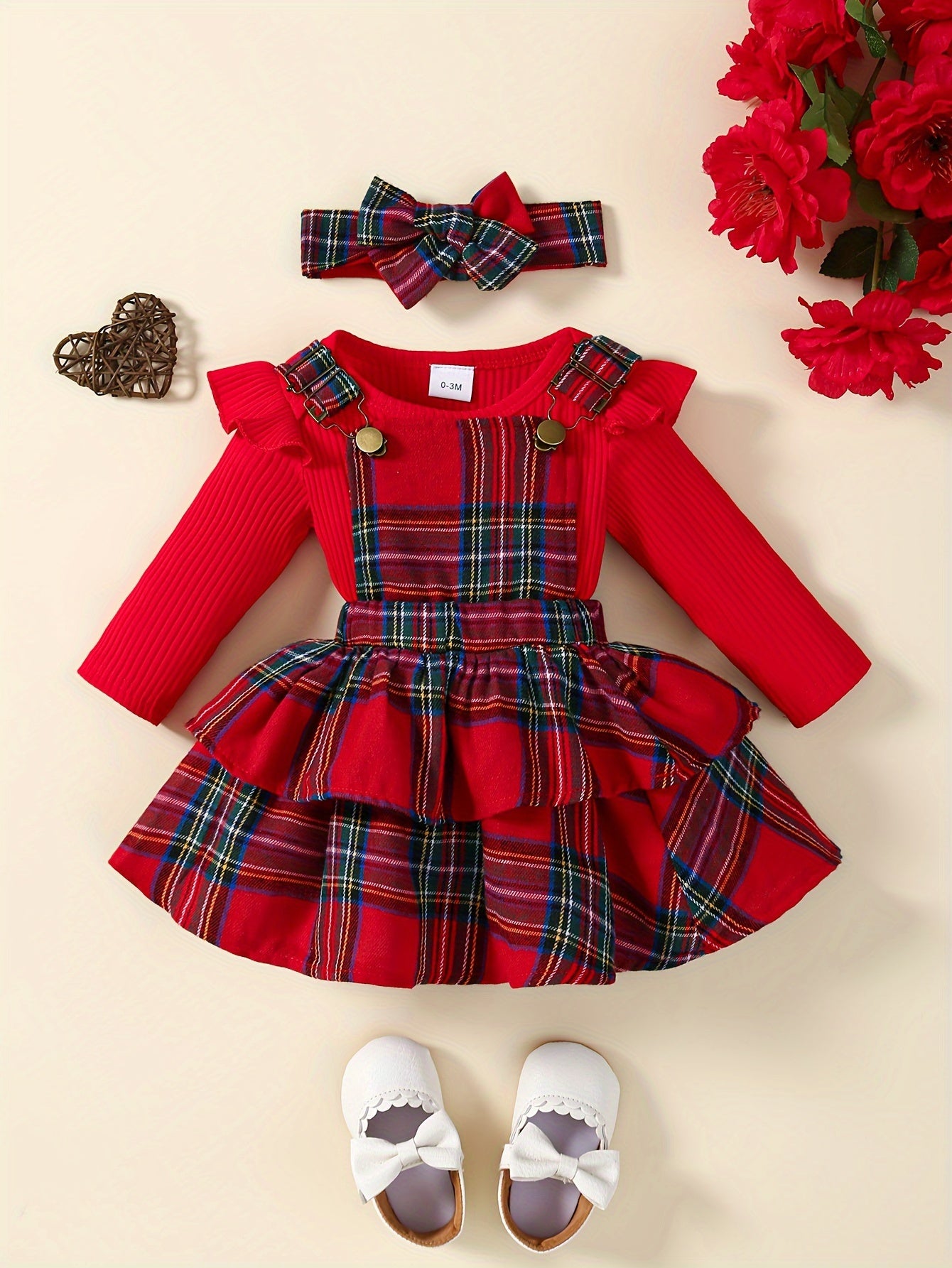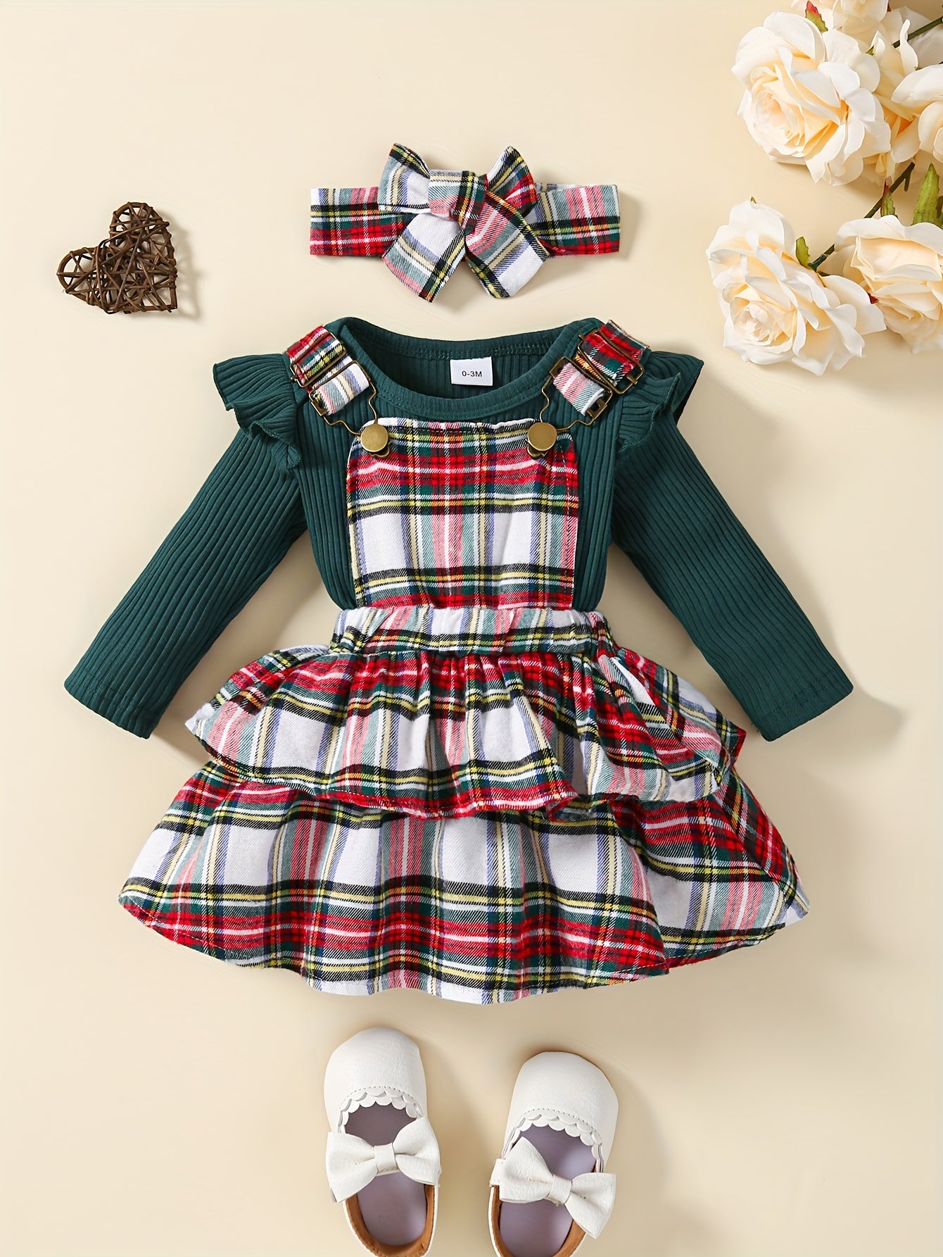 Baby's Overall Dress + Ruffled Bodysuit + Hairband, Toddler & Infant Girl's Clothing Set