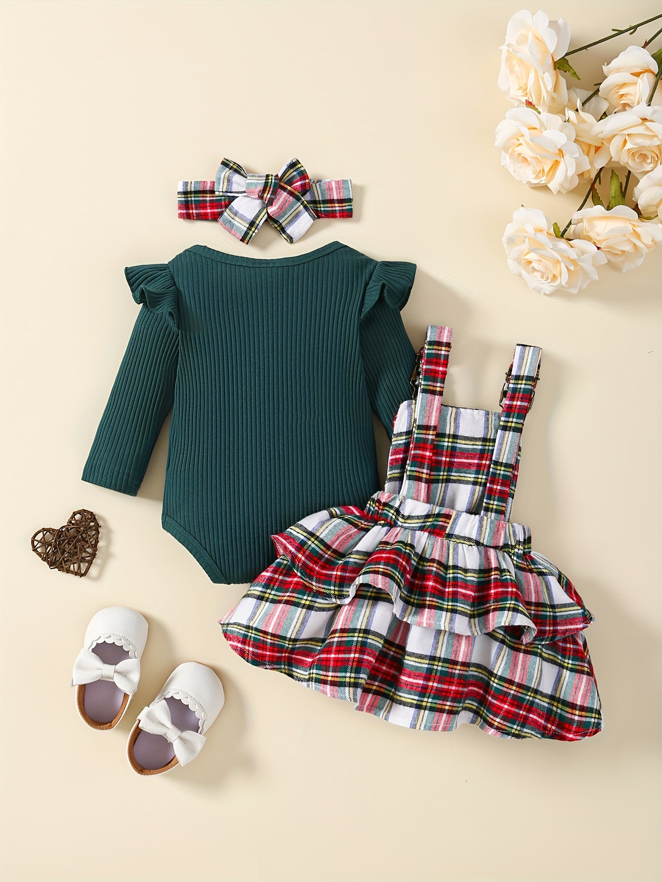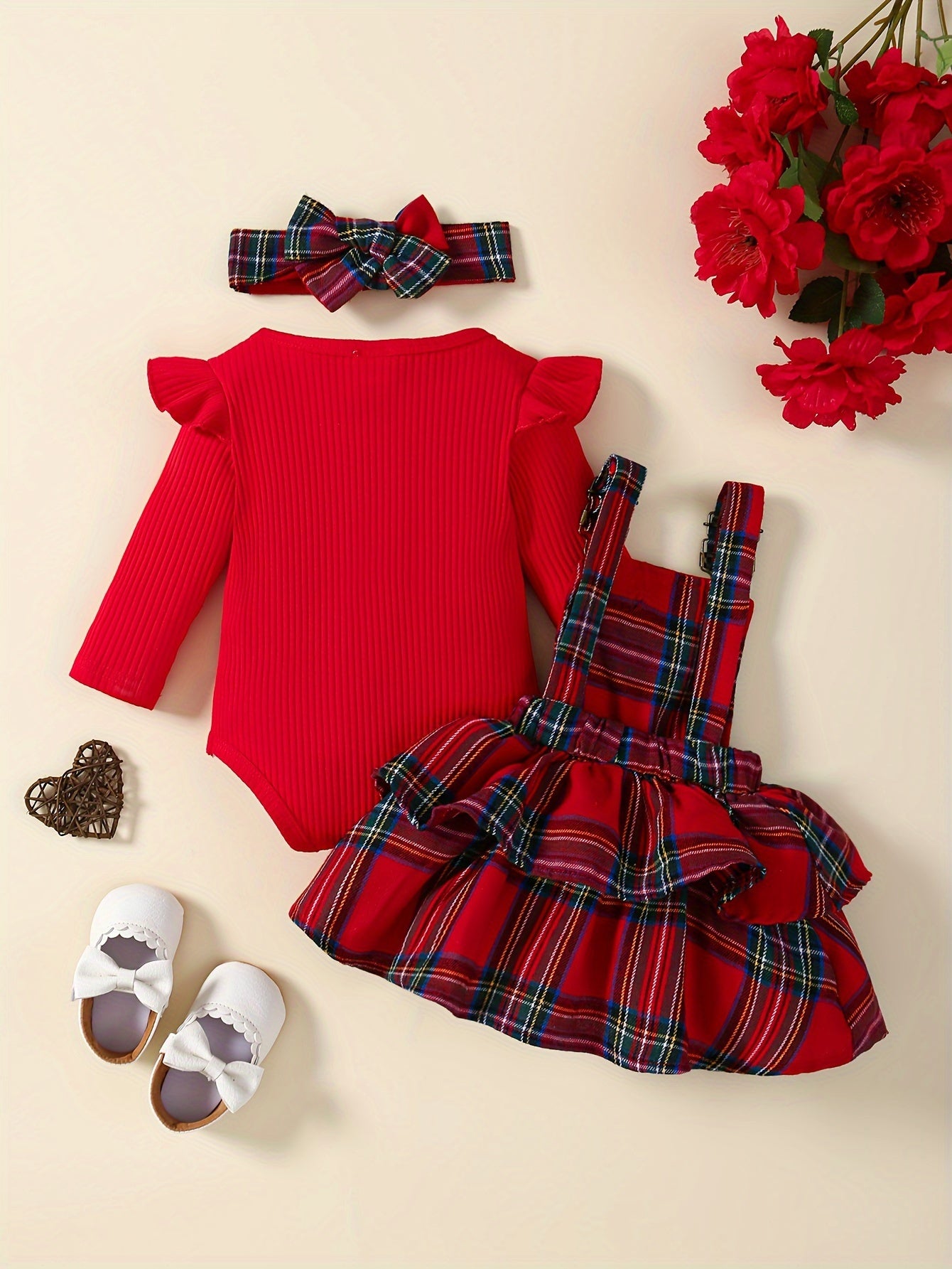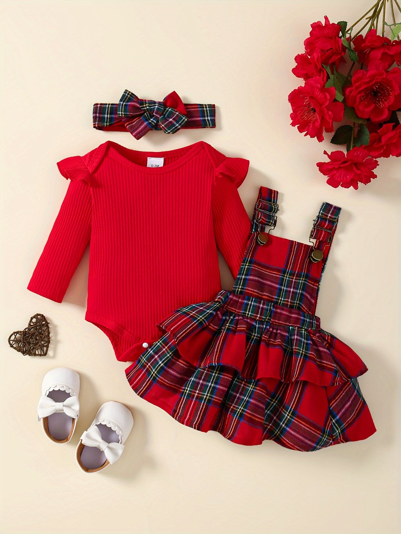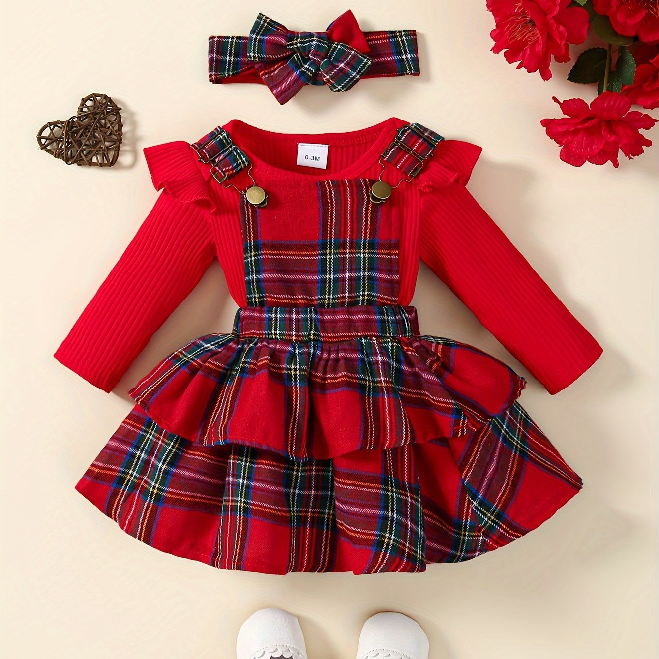 Baby's Overall Dress + Ruffled Bodysuit + Hairband, Toddler & Infant Girl's Clothing Set