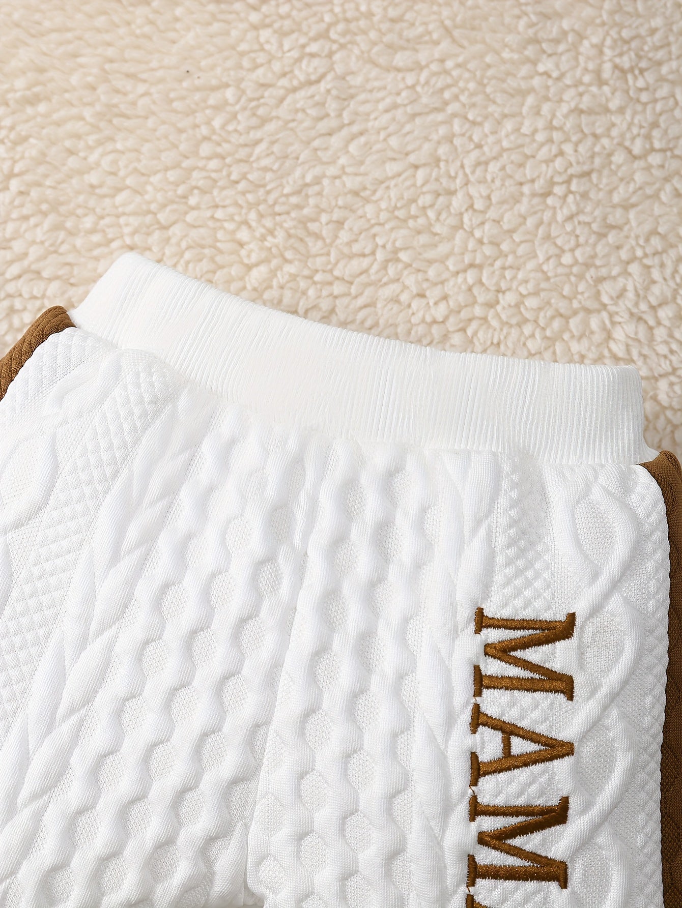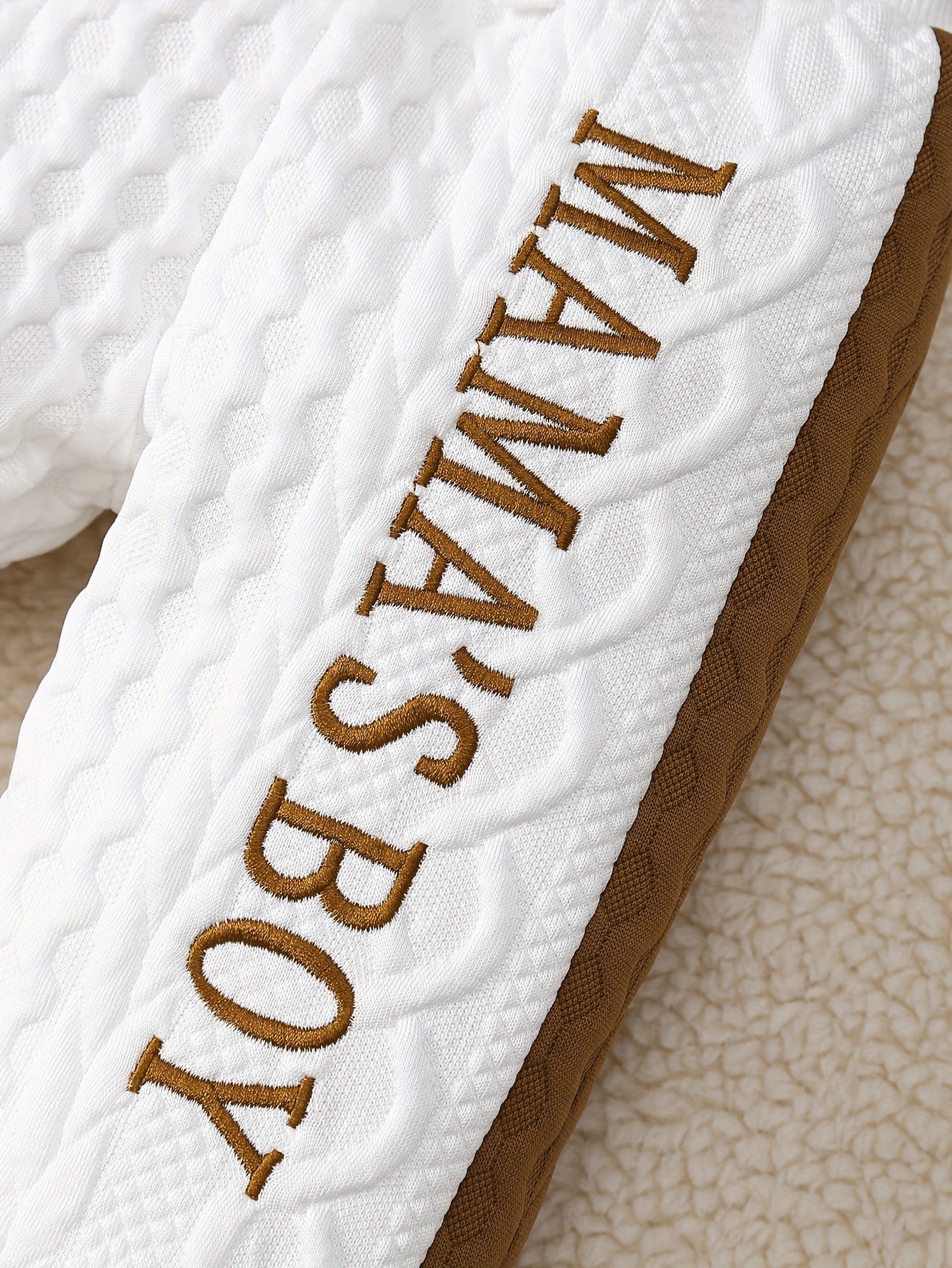 2pcs, Mama's Boy Pattern Textured Bodysuit And Pants For Baby Boys