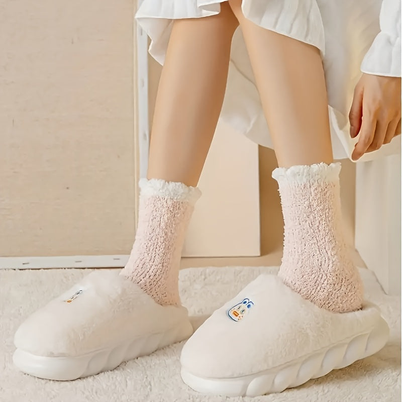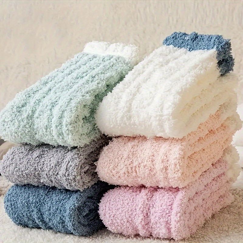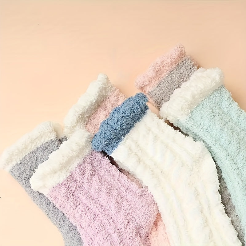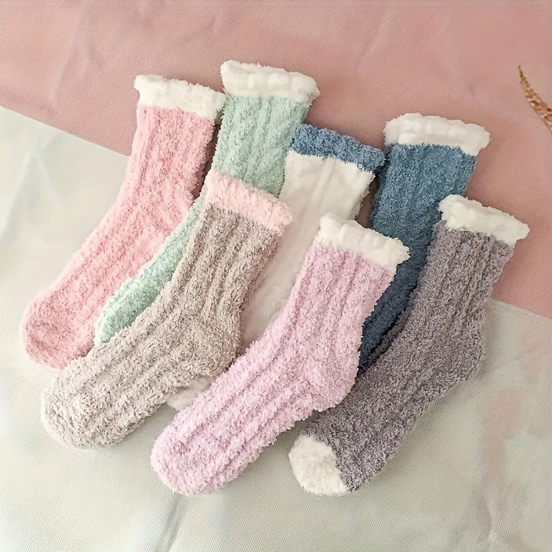 Candy Colored Socks, Fluffy Soft & Warm Floor Slipper Socks For Fall & Winter, Women's Stockings & Hosiery