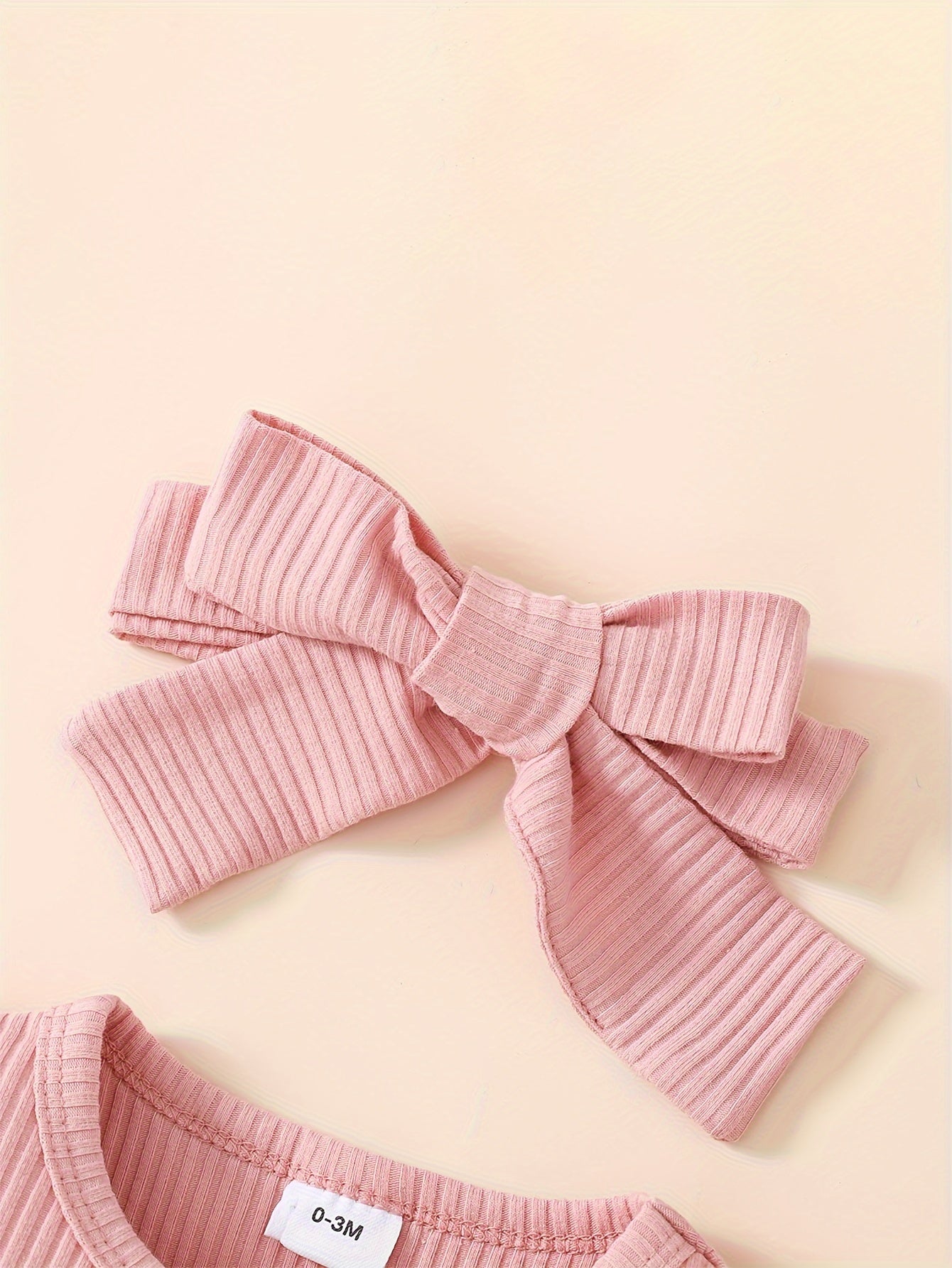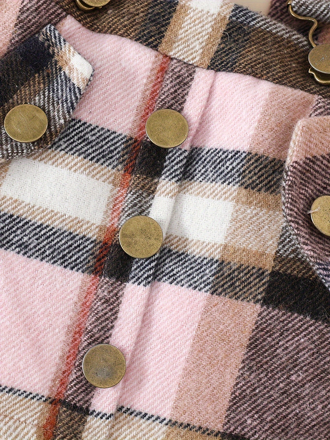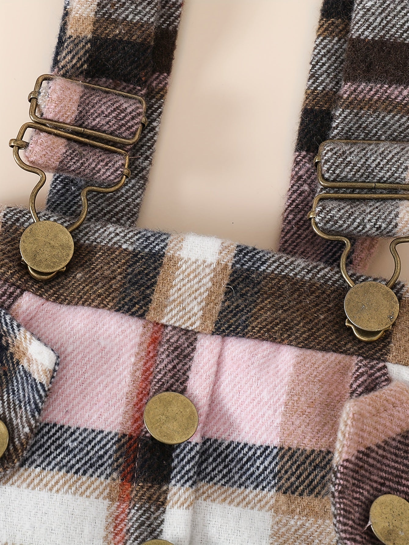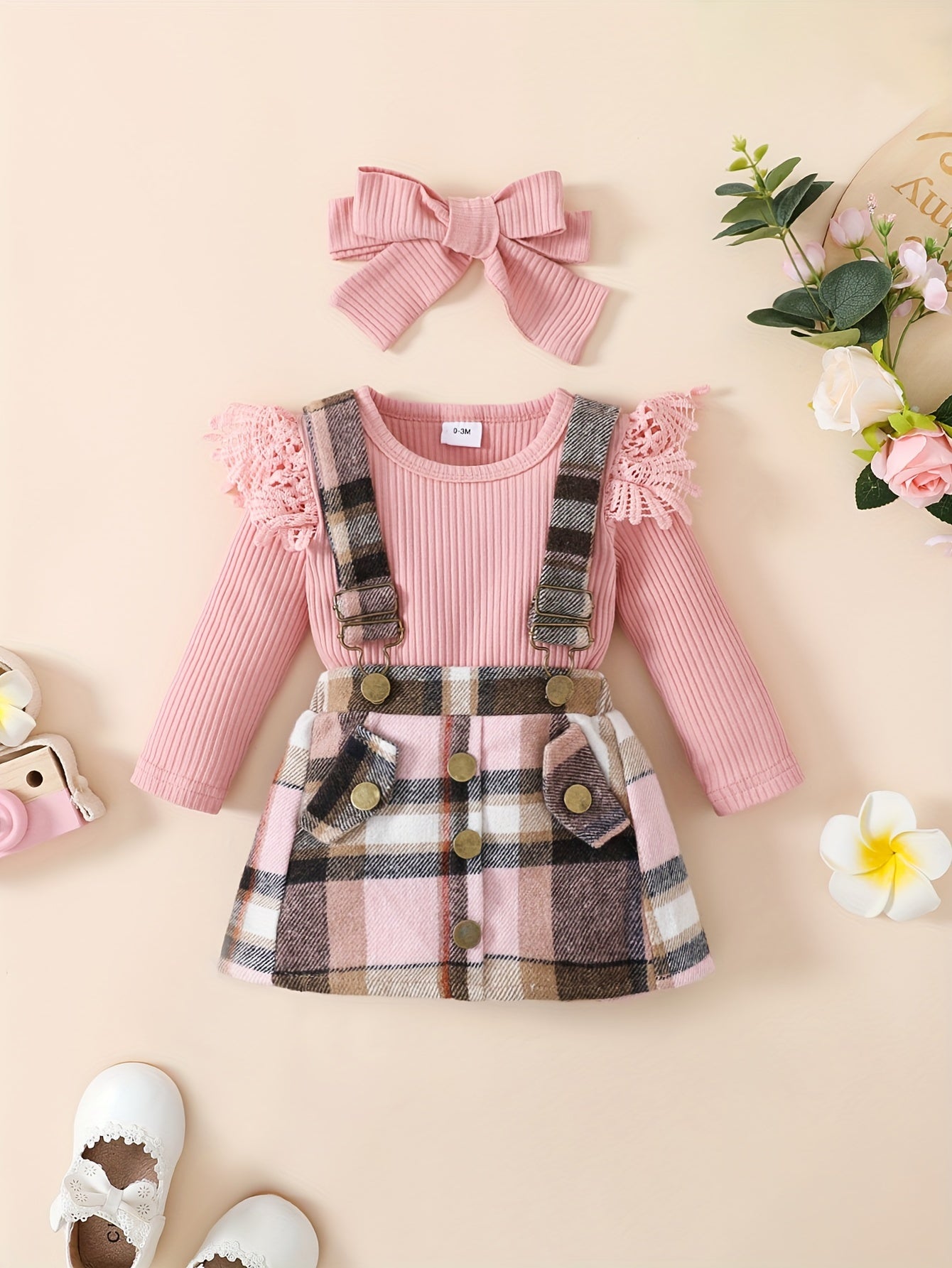 Cozy Cotton Blend Long Sleeve Romper, Plaid Skirt with Adjustable Straps & Matching Headband