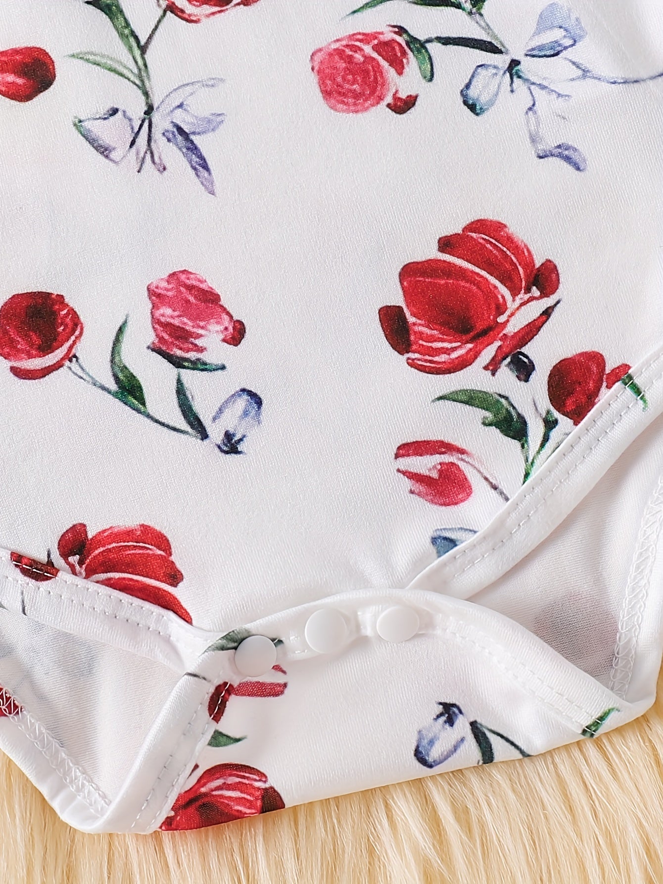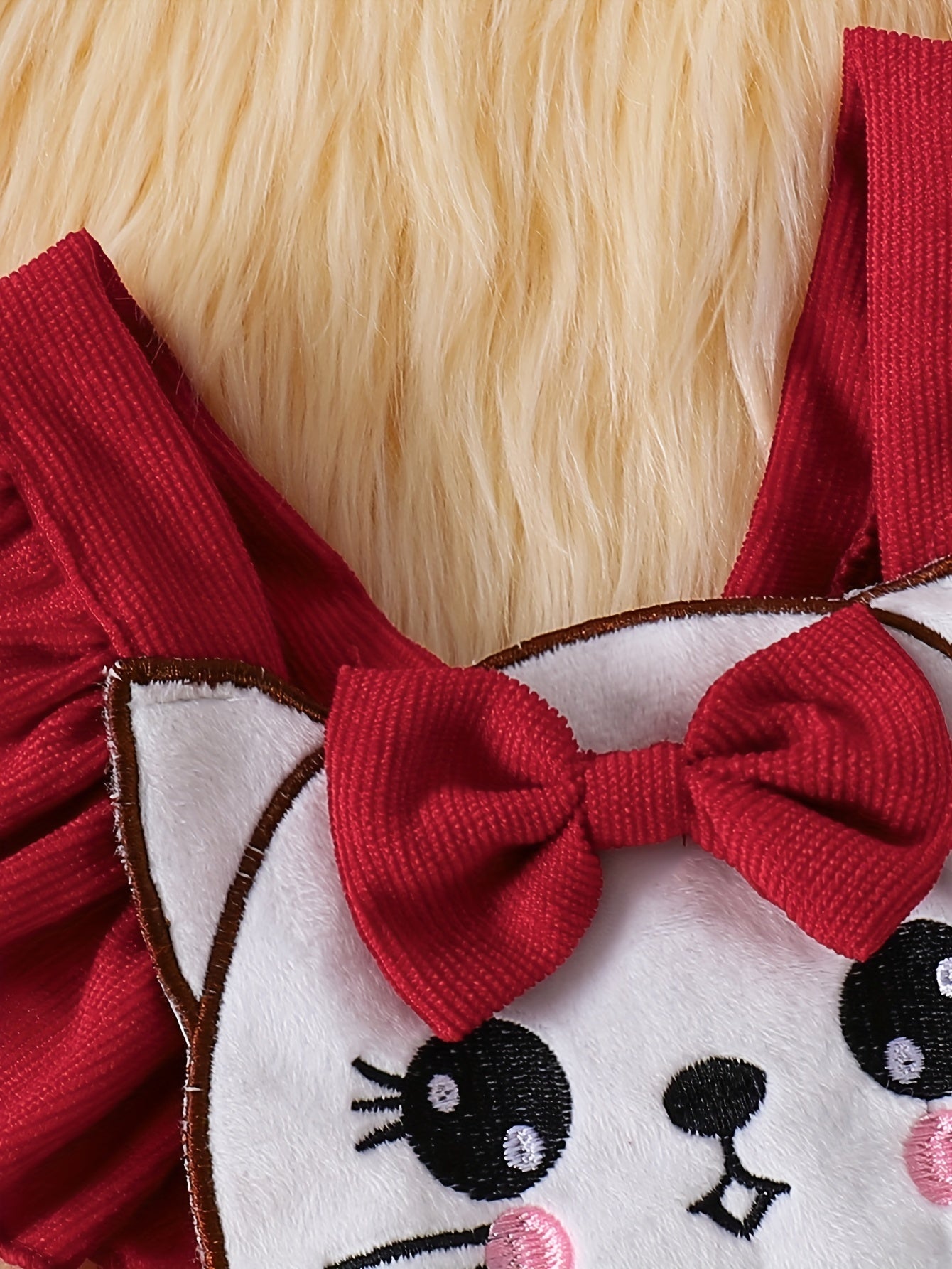 Floral Long Sleeve Romper, Kitty Print Overalls & Headband