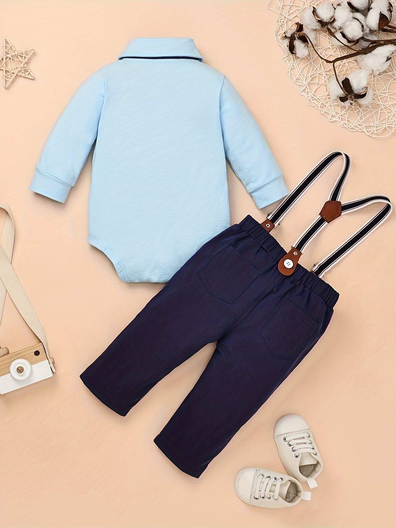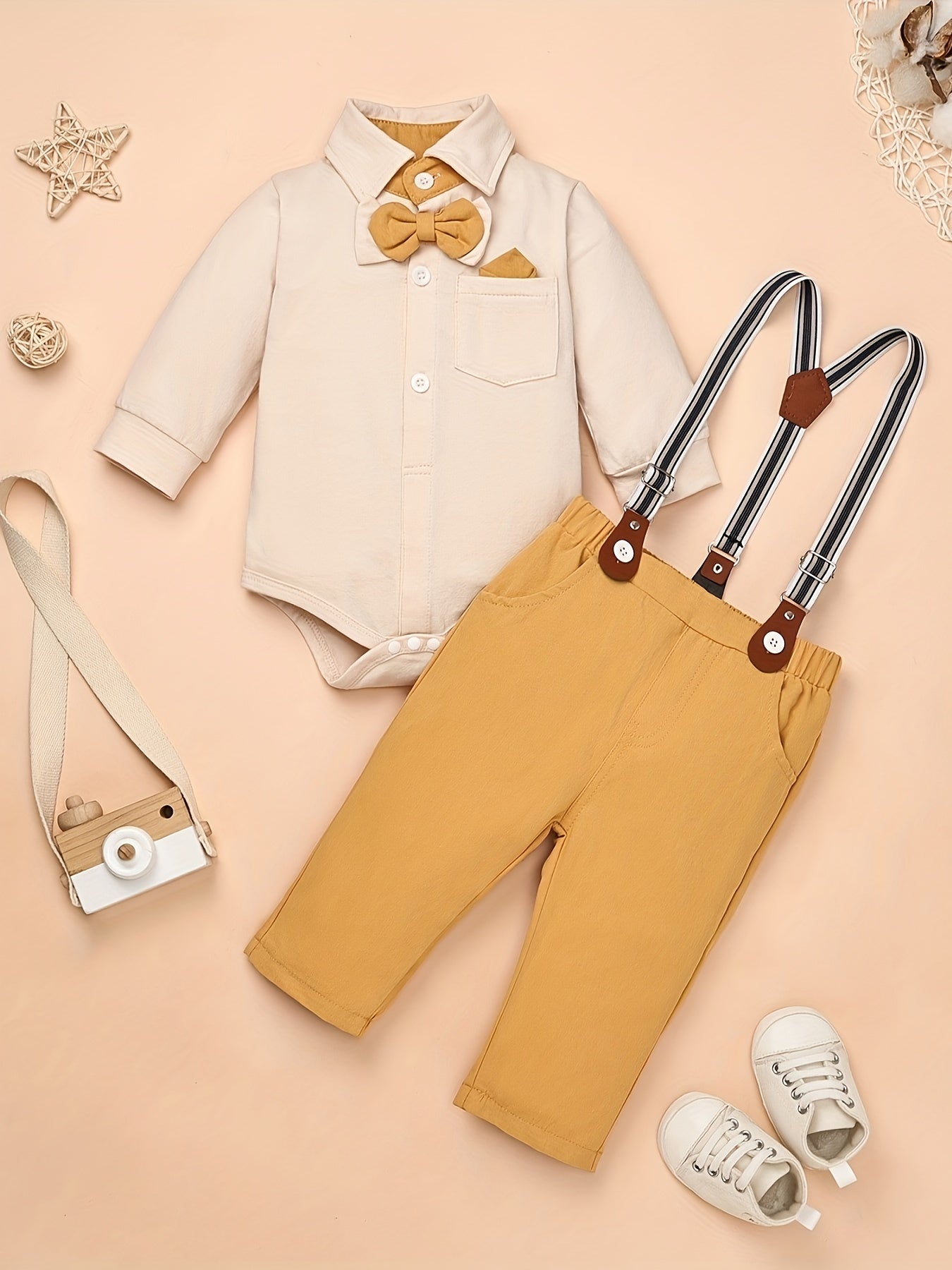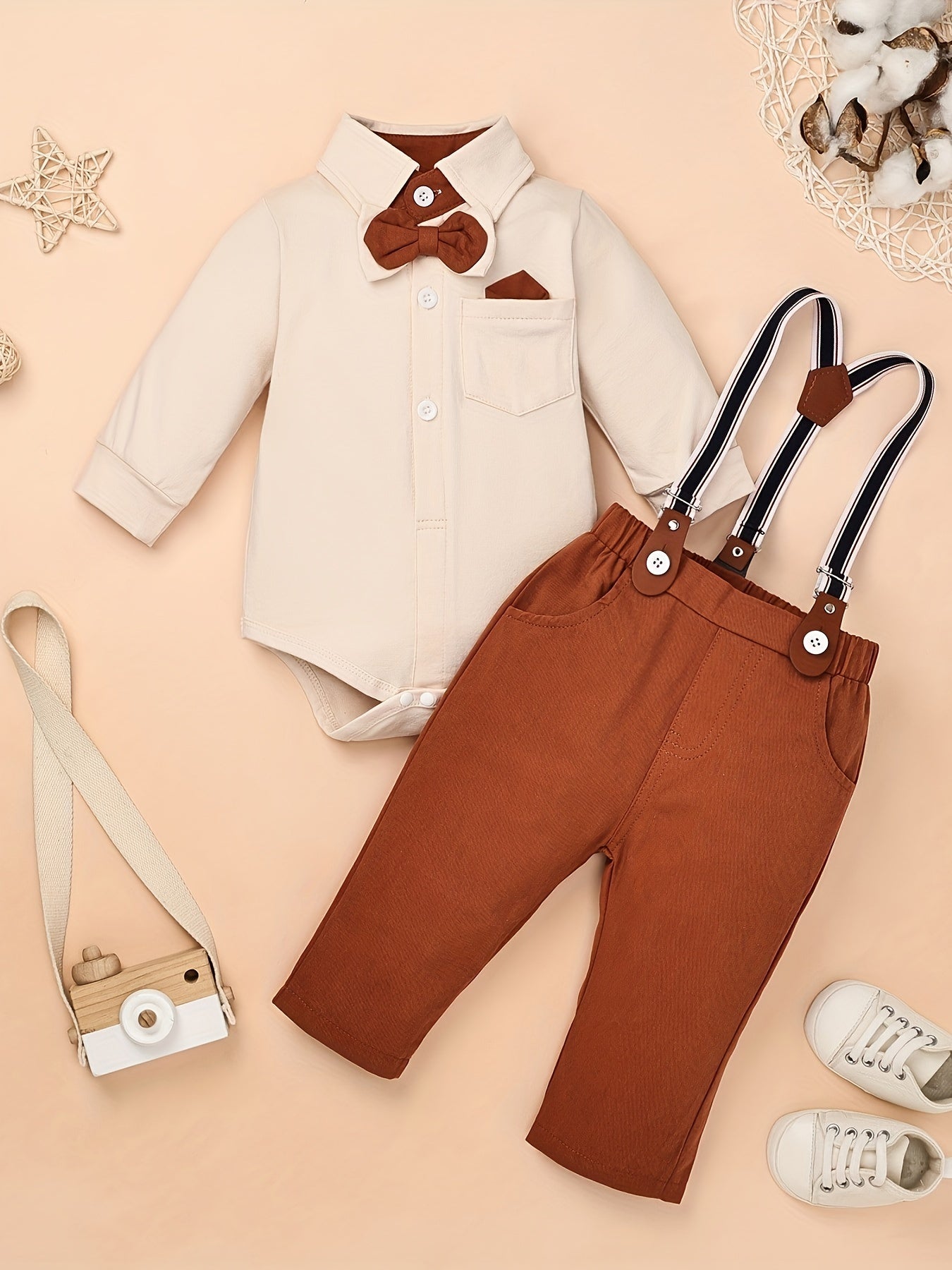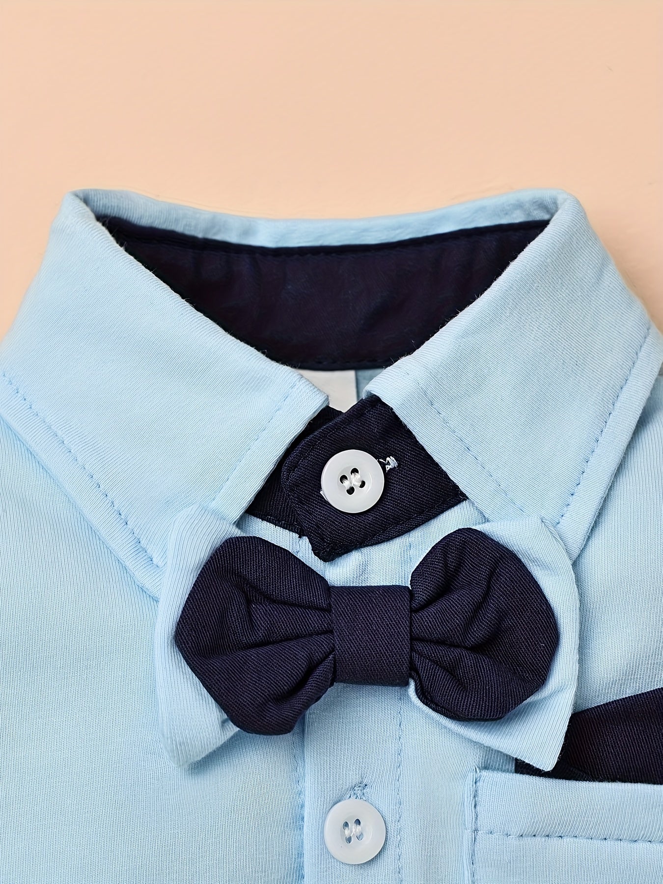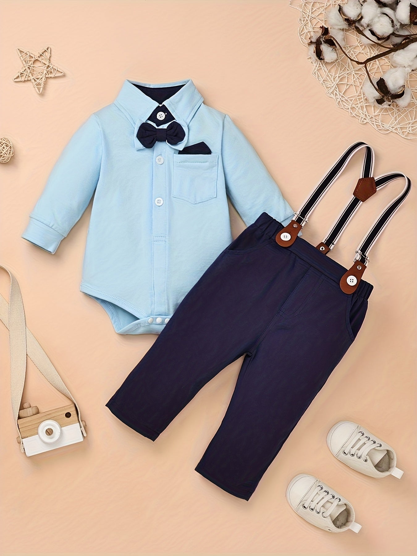 GentlemanLong Sleeve Shirt Romper + Strap Pocket Pants + Bowtie Casual Party