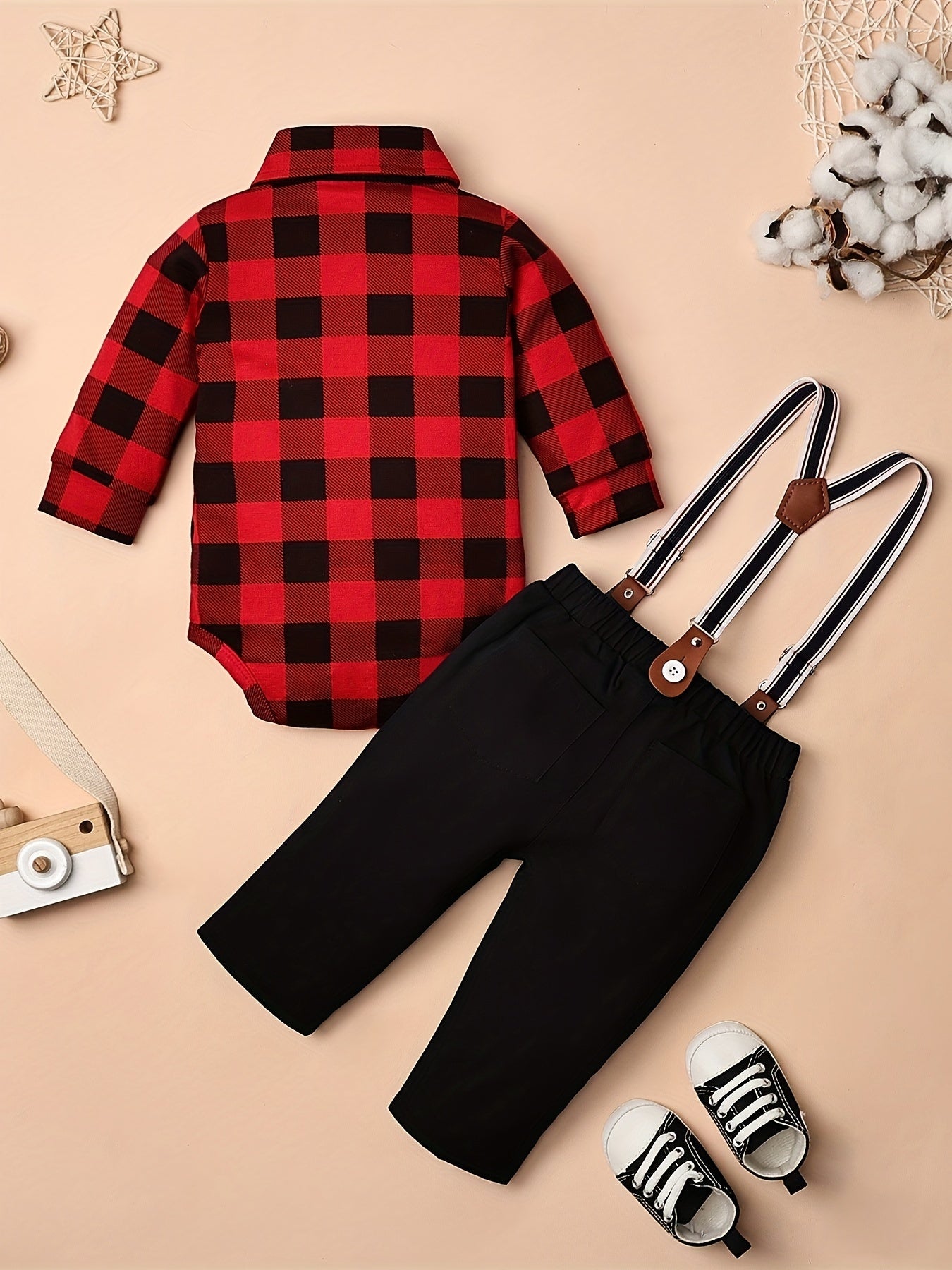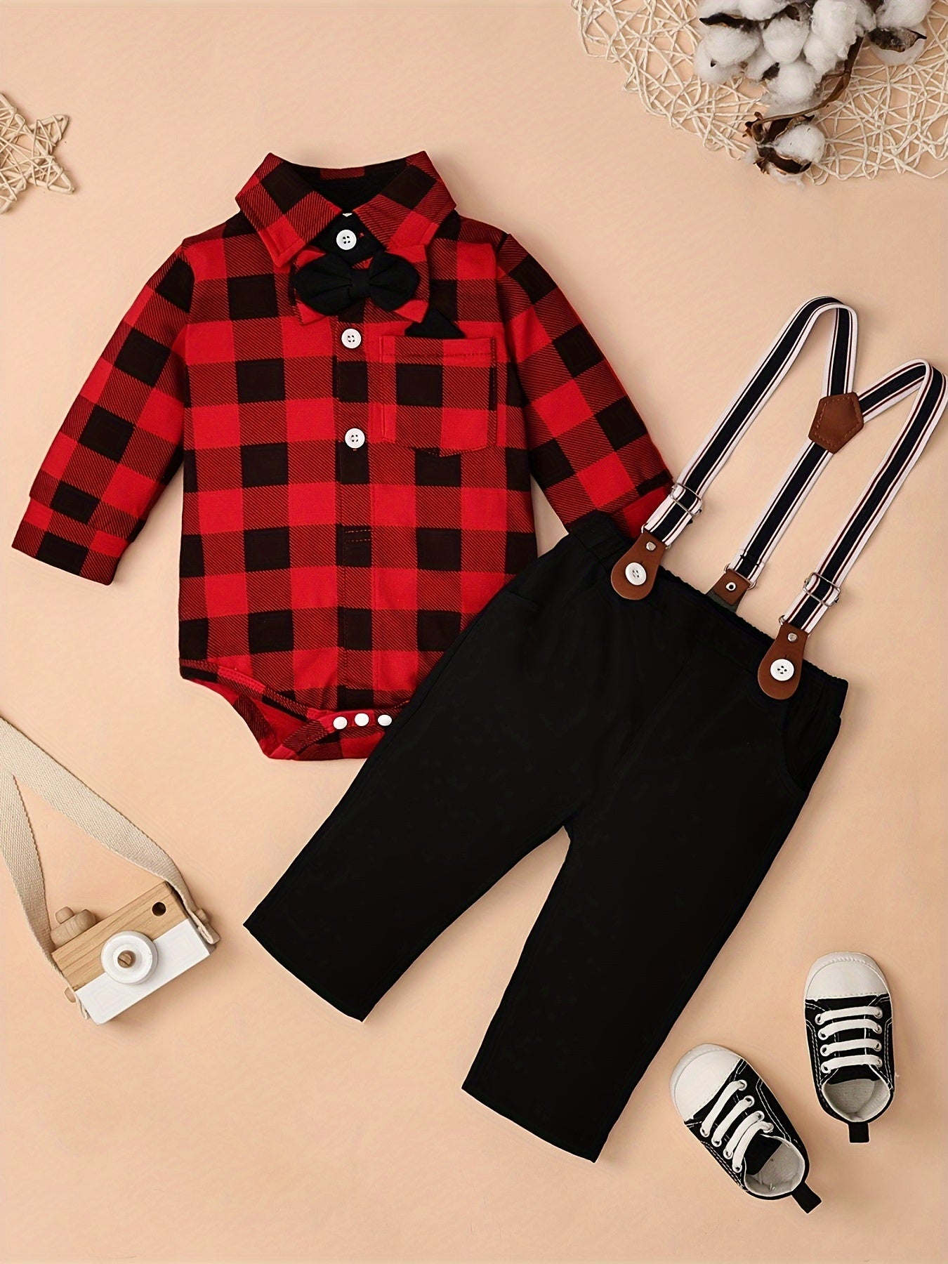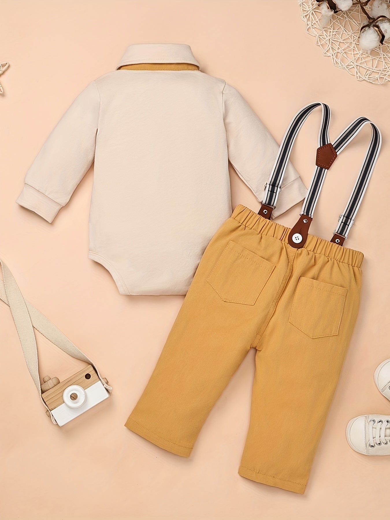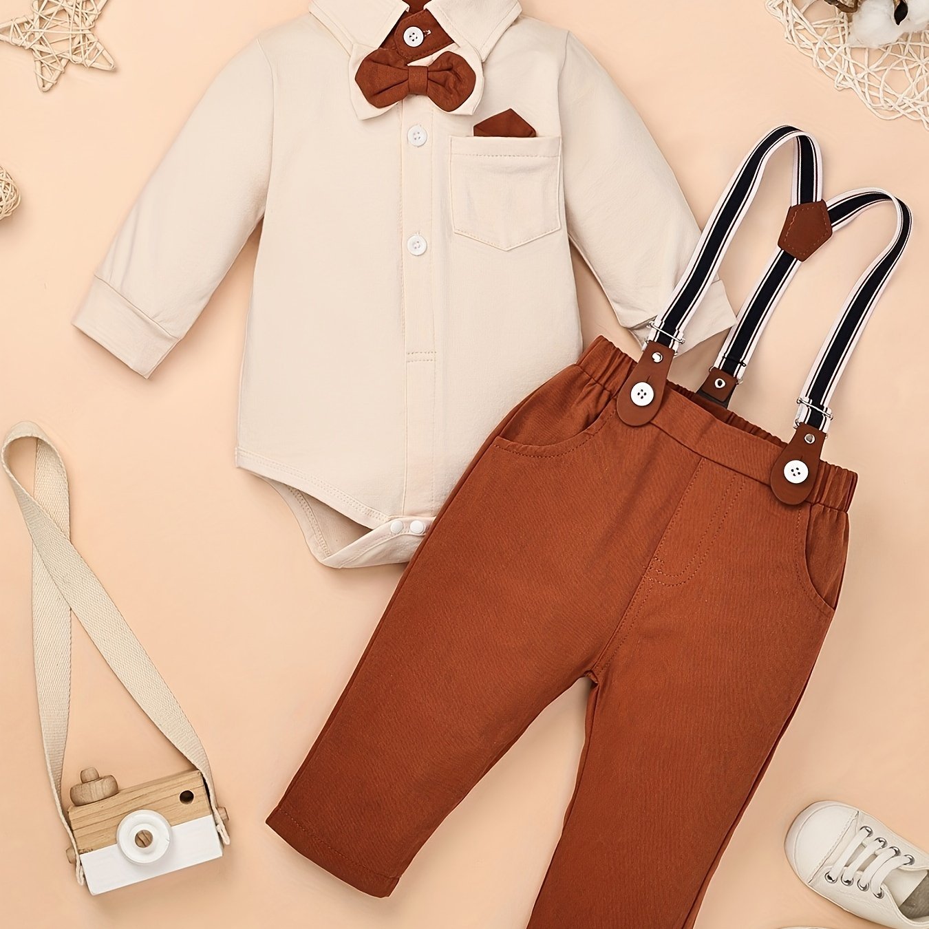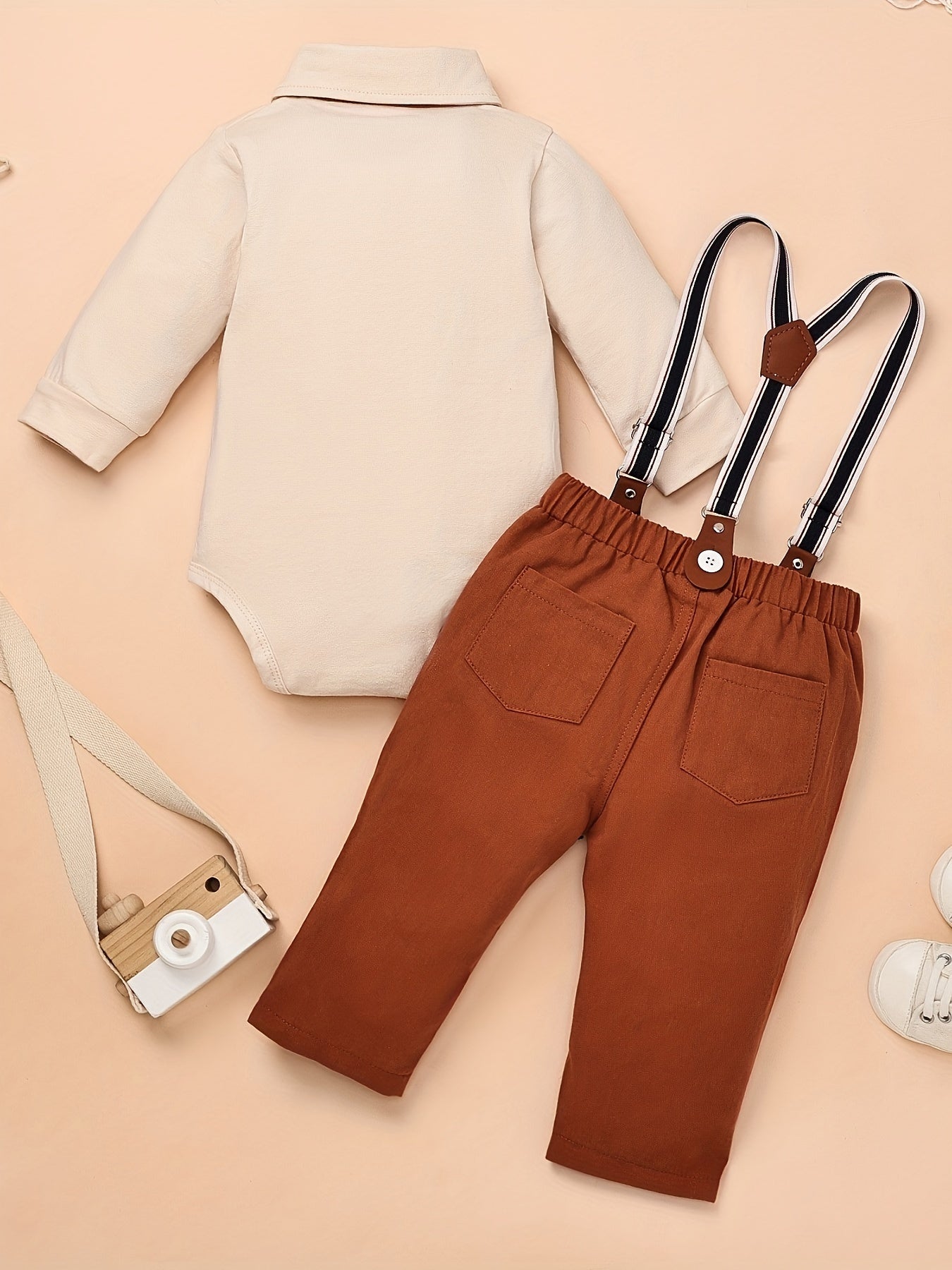GentlemanLong Sleeve Shirt Romper + Strap Pocket Pants + Bowtie Casual Party