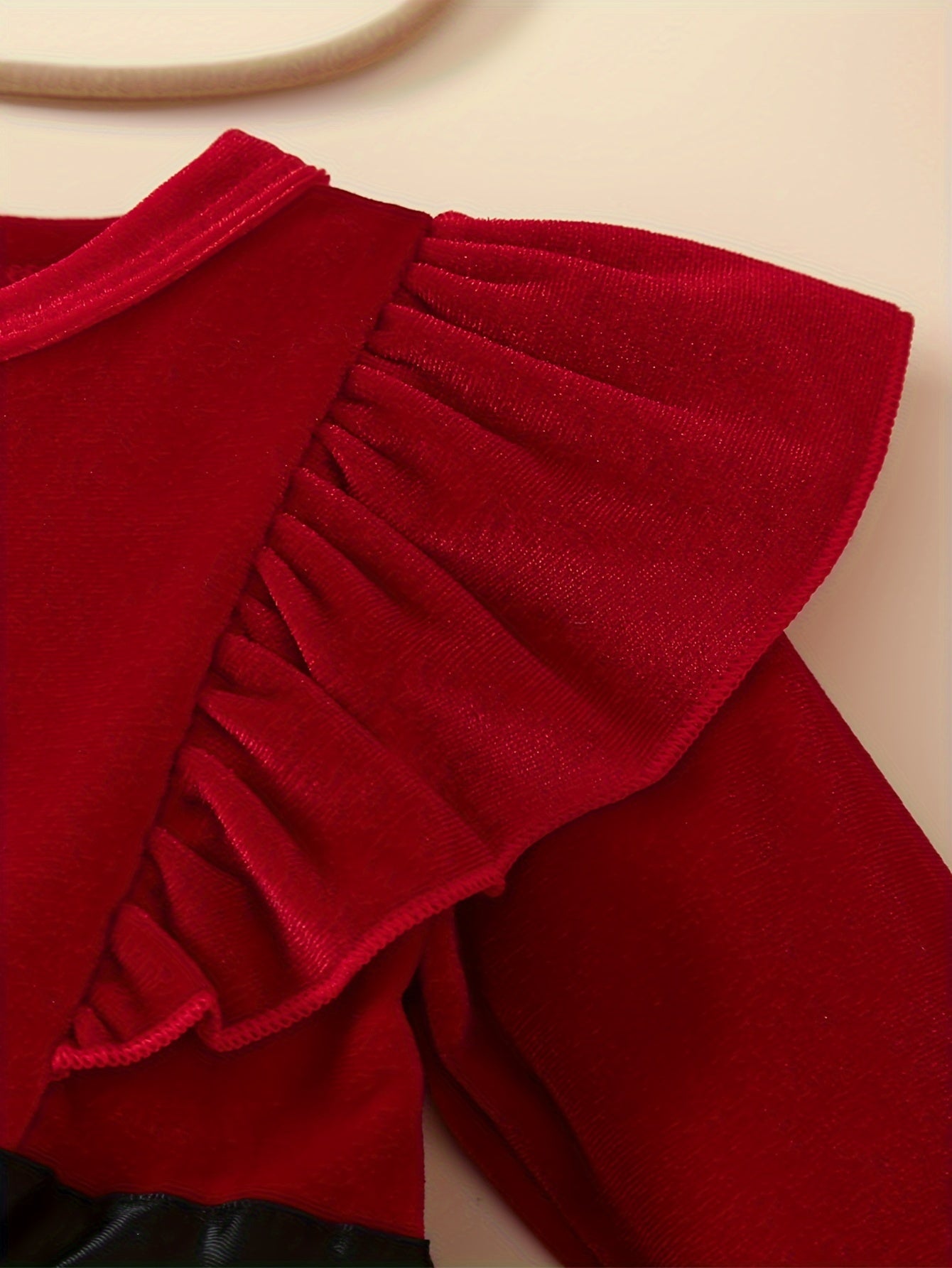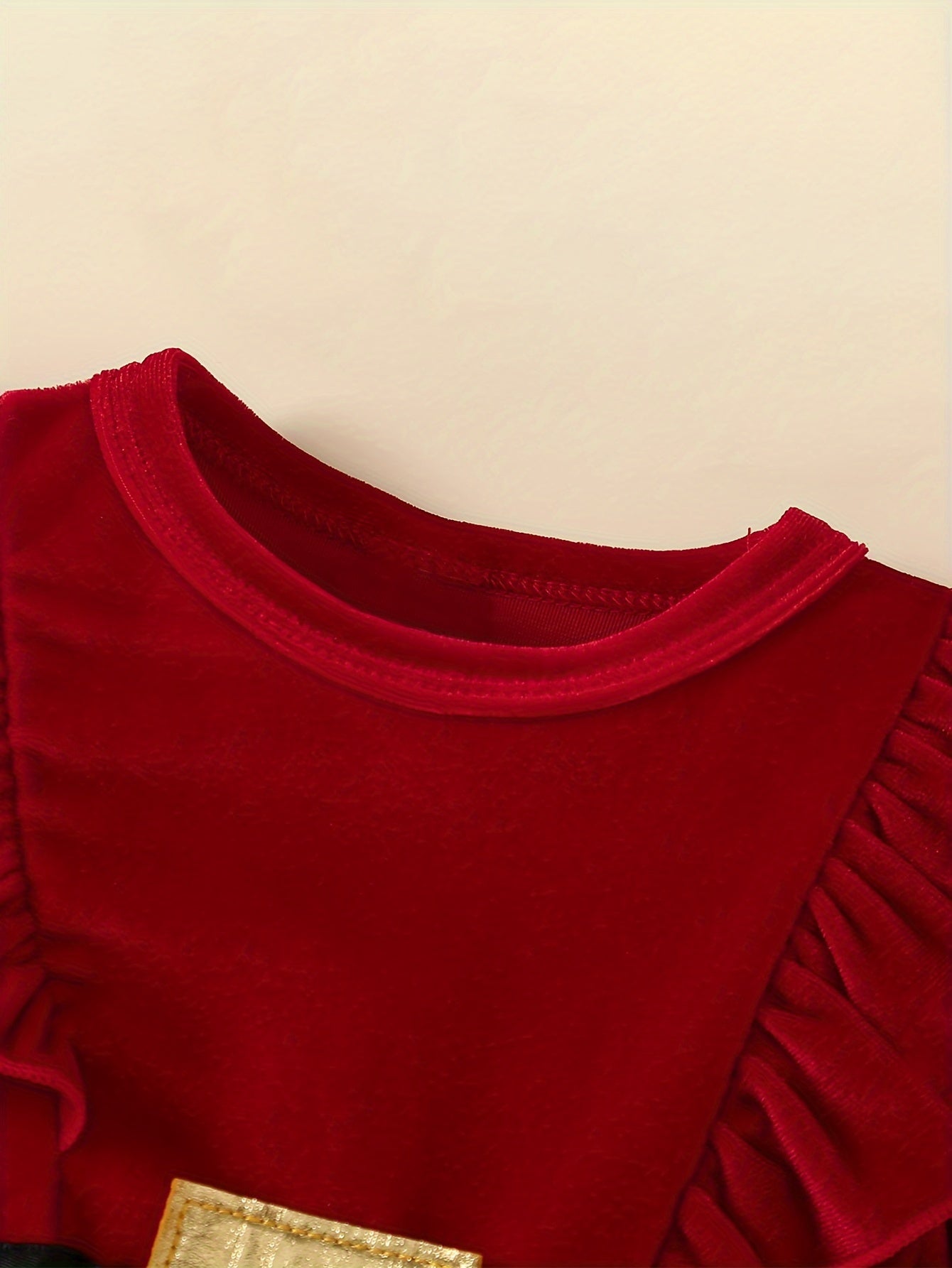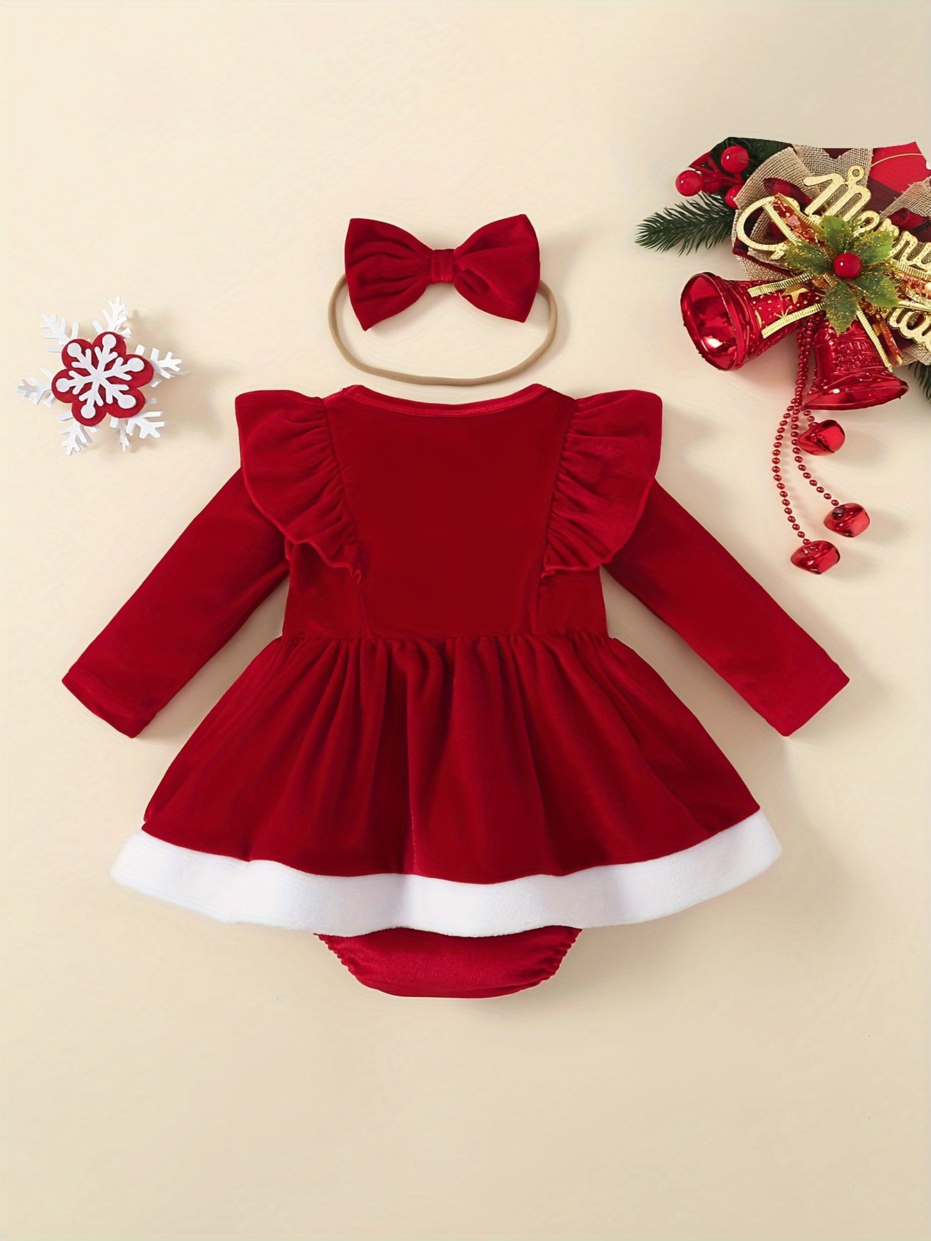 Baby Girl's Long Sleeves Jumpsuit With Skirt's Hemline & Bowknot Headscarf Set