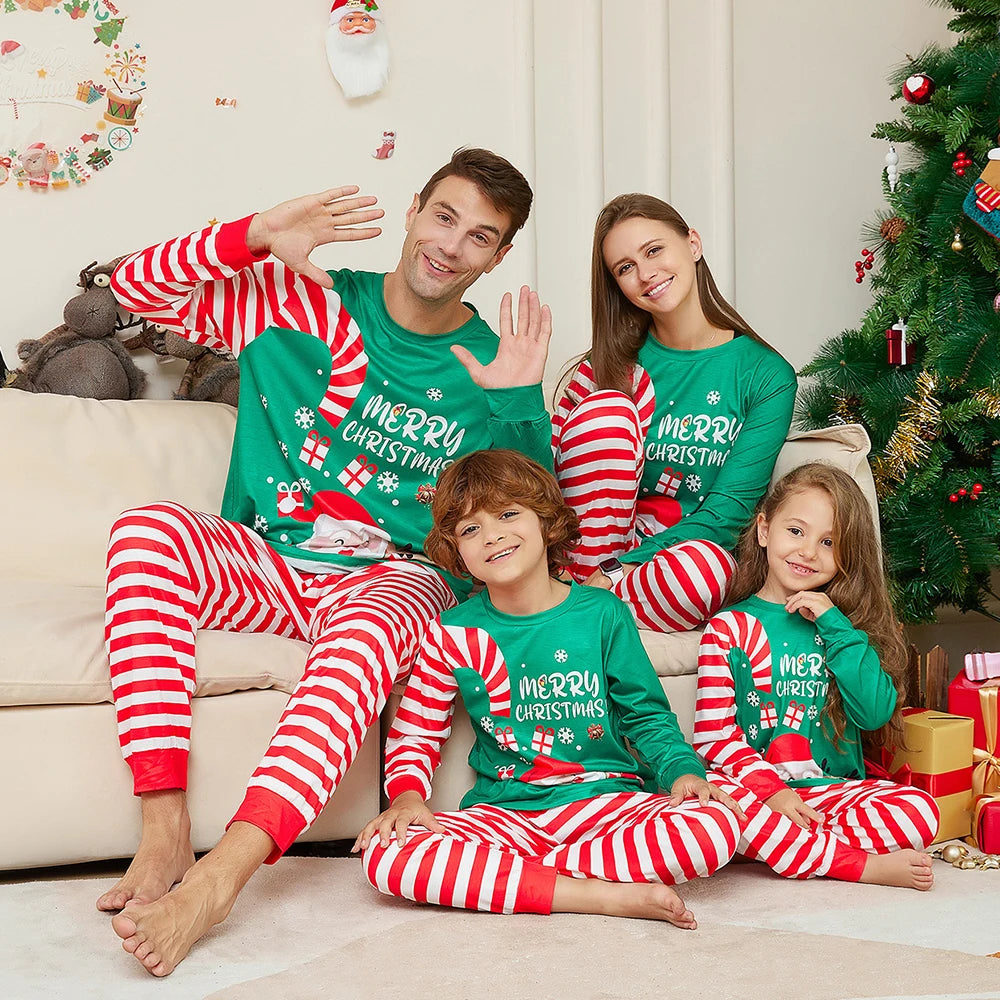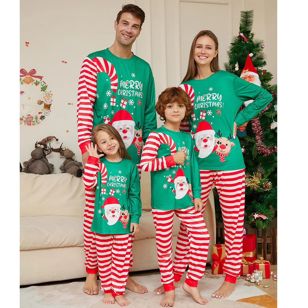 Christmas Father Son Mom Daughter Matching Pajamas Set Santa Claus Hat