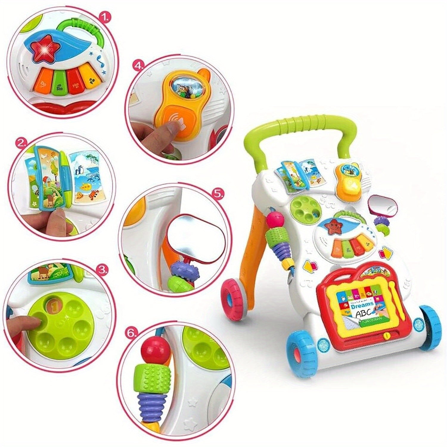 · Specifications: Product accessories: 1 x multifunctional walker Dimensions: 42 x 45 x 32 cm Color: Multicolor material: plastic Function 1: Sitting on the floor and playing Function 2: Push walker Features: music Ability: intelligence development, corretly, grip, hand-eye coordination, interactive Theme: music Model: Multifunctional walker Include: 1x Walker First Steps