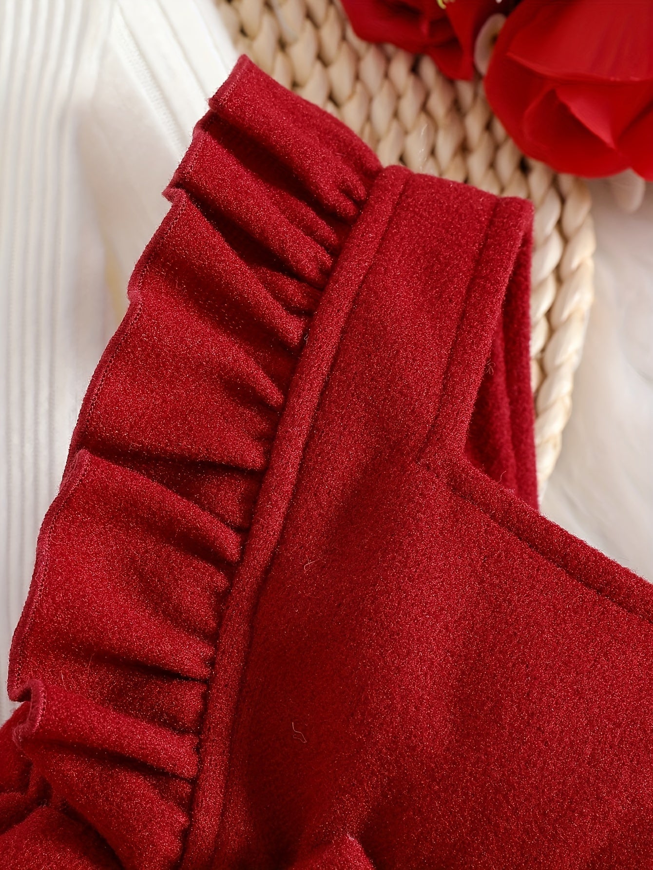 Girls' Spring and Autumn Solid Color Versatile Trench Coat with High Collar, Small Flying Sleeves, Bow Belt and Long Pants Set