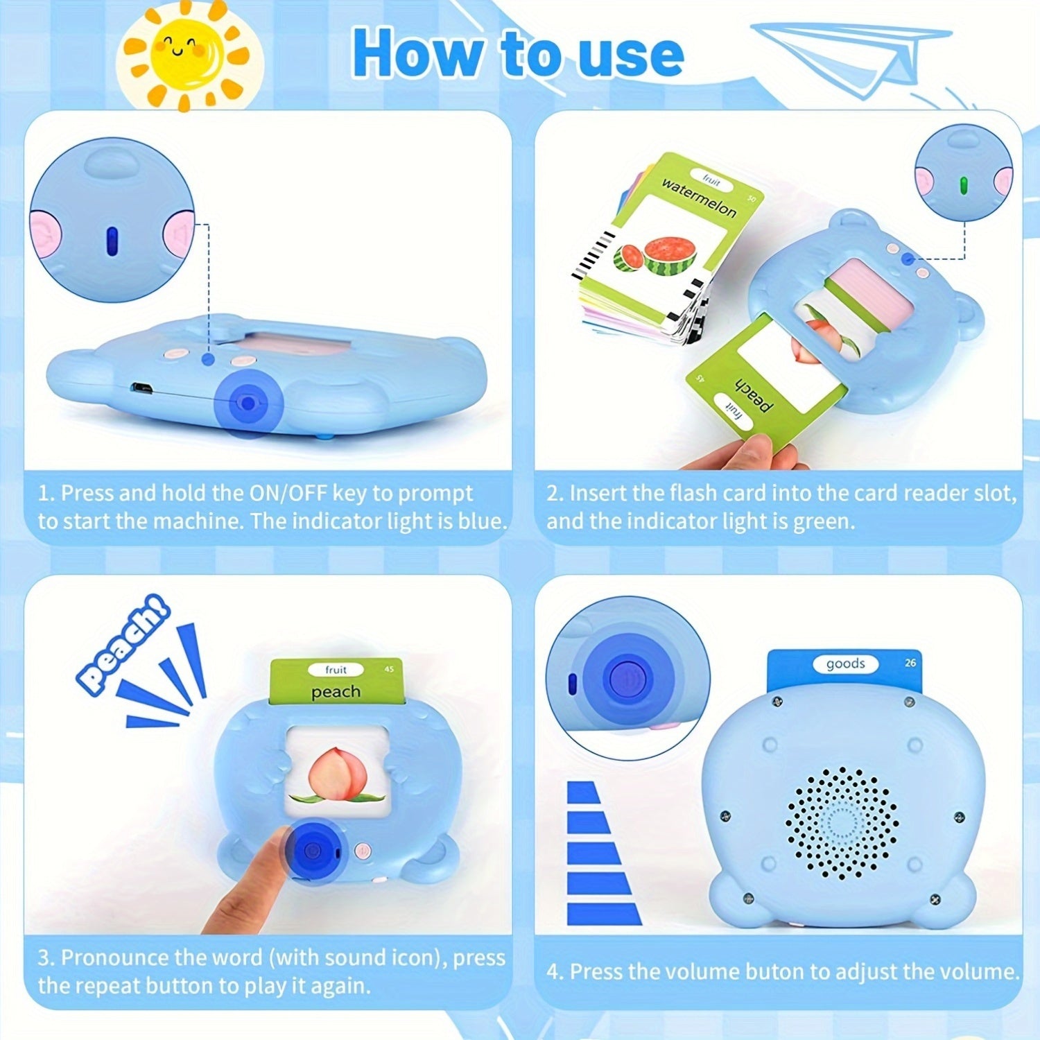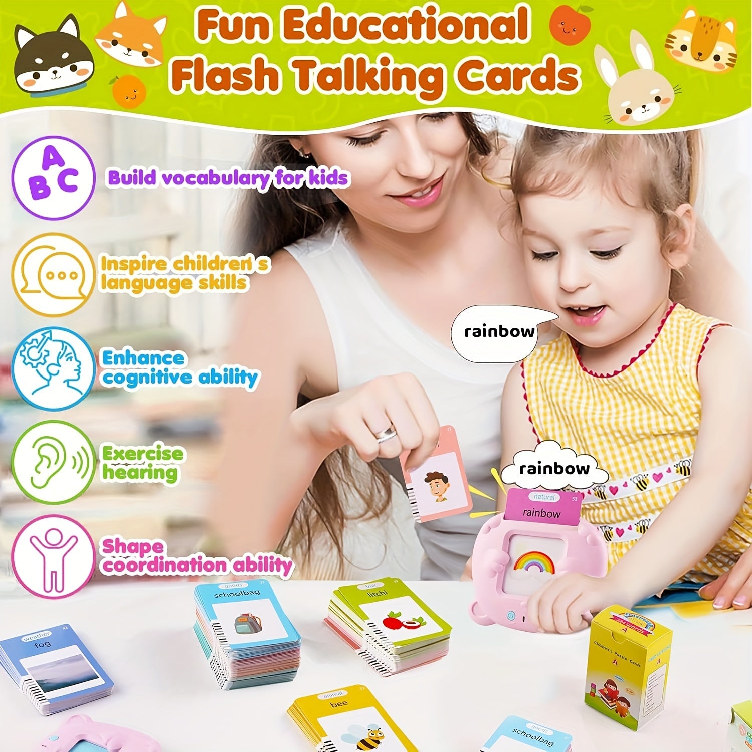 Interactive Flash Cards Reader with 112 Cards, 224 Words, Educational Learning Toy