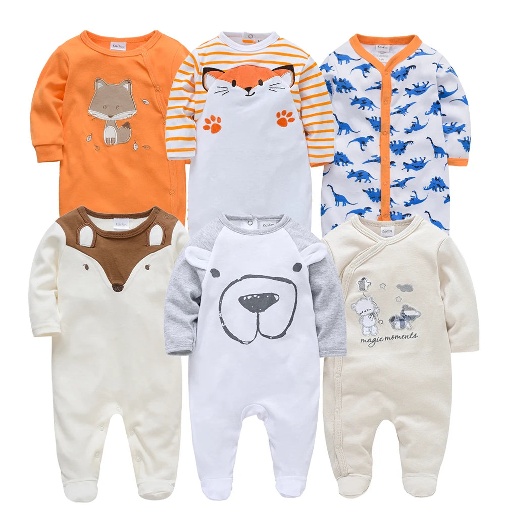KAVKAS Baby Boys Clothing Cotton Cartoon Printing Kids Rompers Knit Newborn Overalls Orange Pajamas Baby Jumpsuit