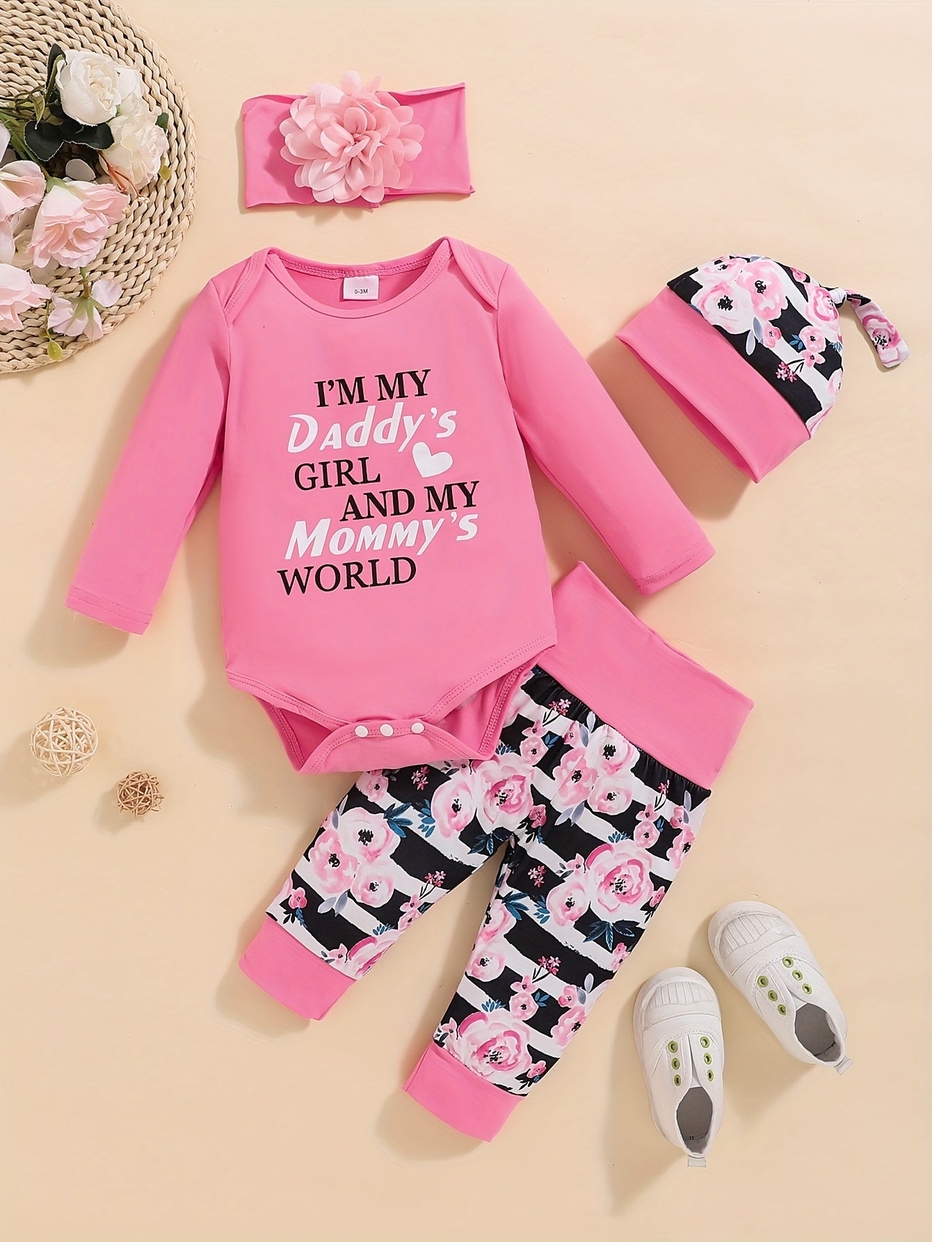 Baby Girls Long Sleeve Bodysuit and Floral Pants Clothes Set
