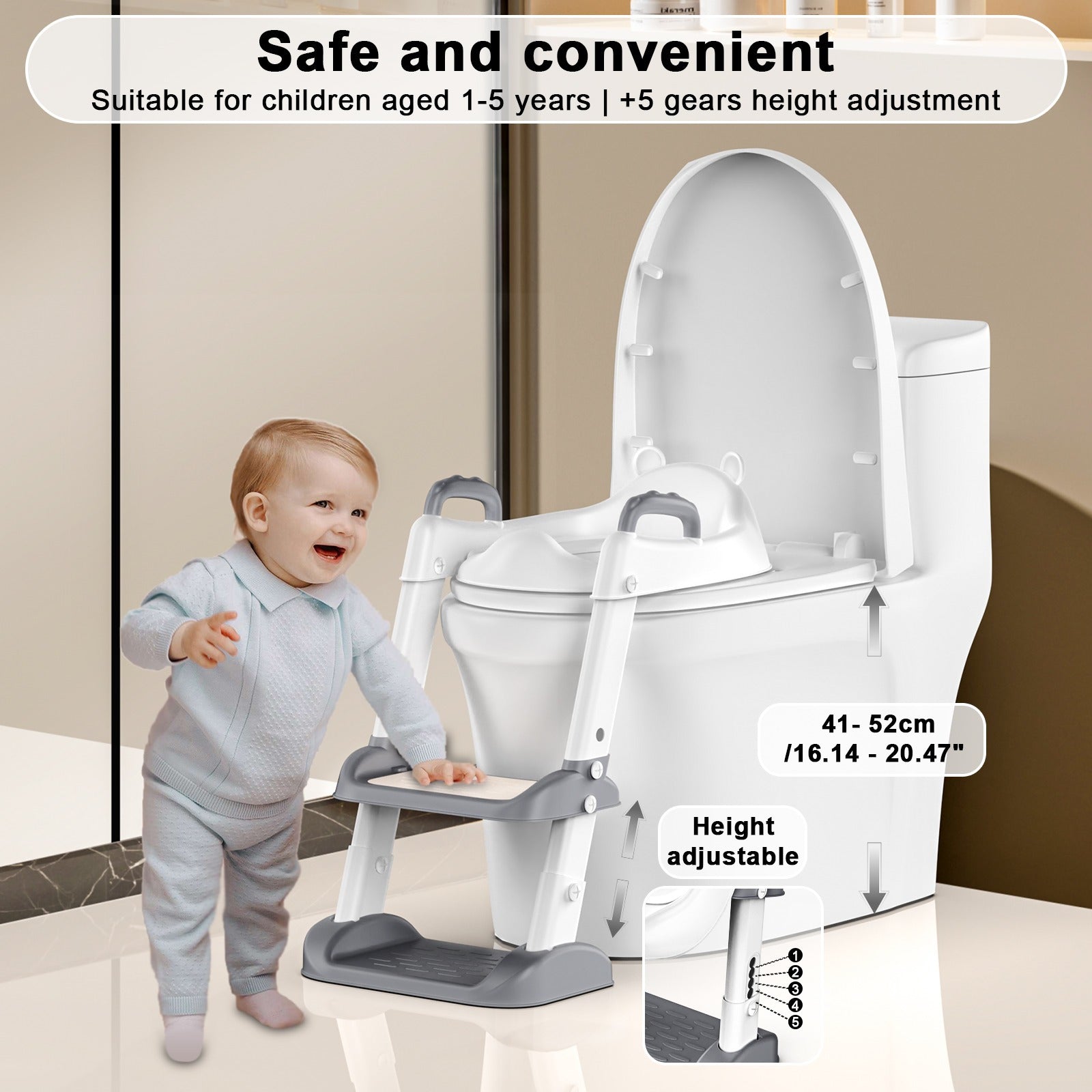 Anti Splash Handle&Soft Cushion, Child Toilet Training Seat for Kids Boys Girls Christmas Halloween Thanksgiving Day Valentine's Day Easter Gifts Gray
