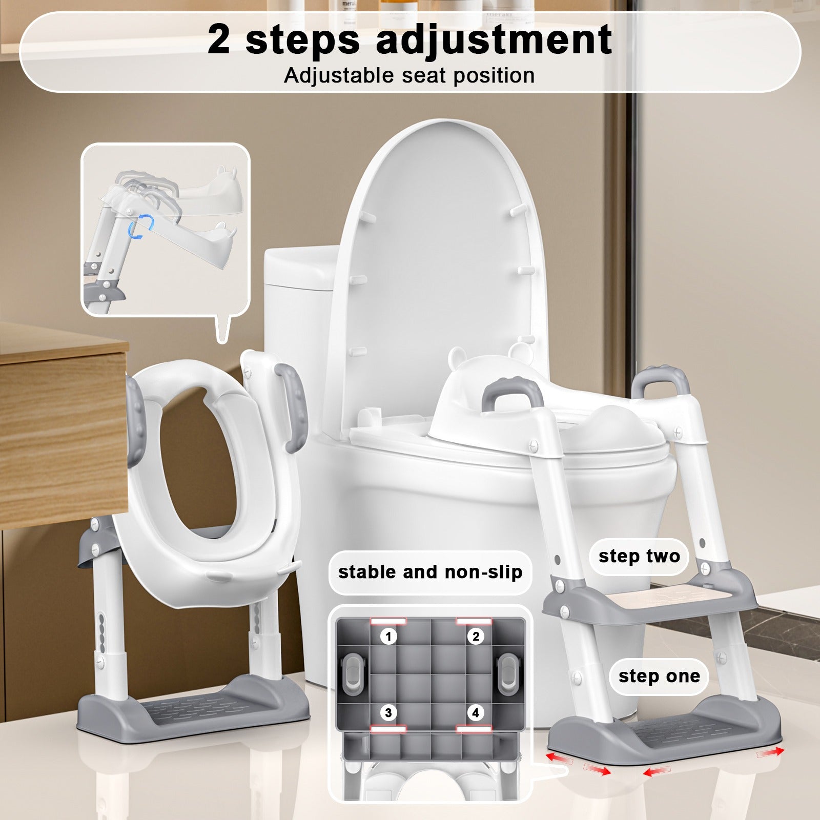 Potty Training Toilet Seat, Adjustable Toddler Toilet Seat with Steps