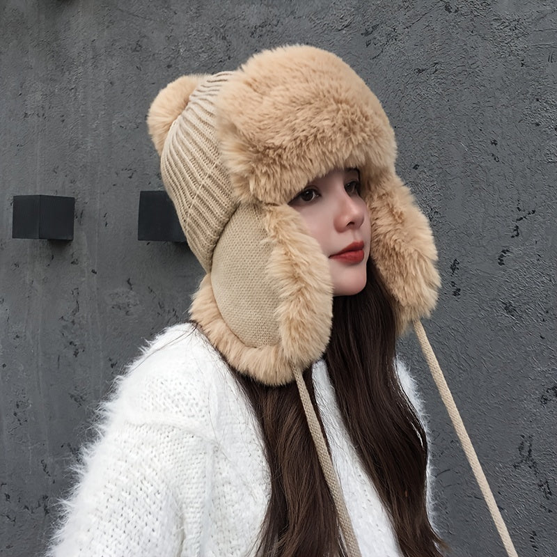 Thicken Plush Furry Ear Protection Thermal Bomber Hat, Fall Winter Keep Warm Soft Comfortable Earflap Warm Hat