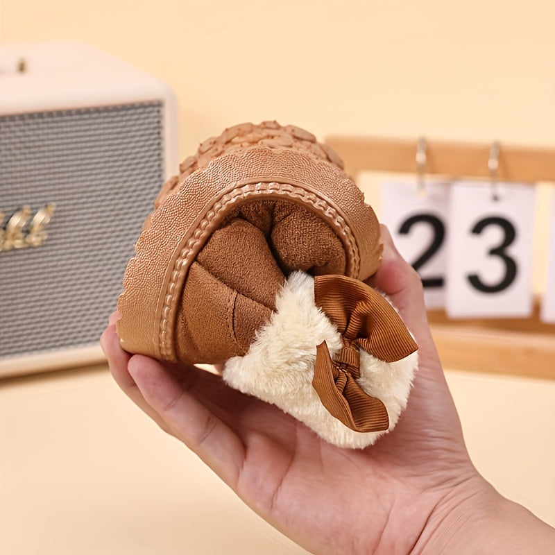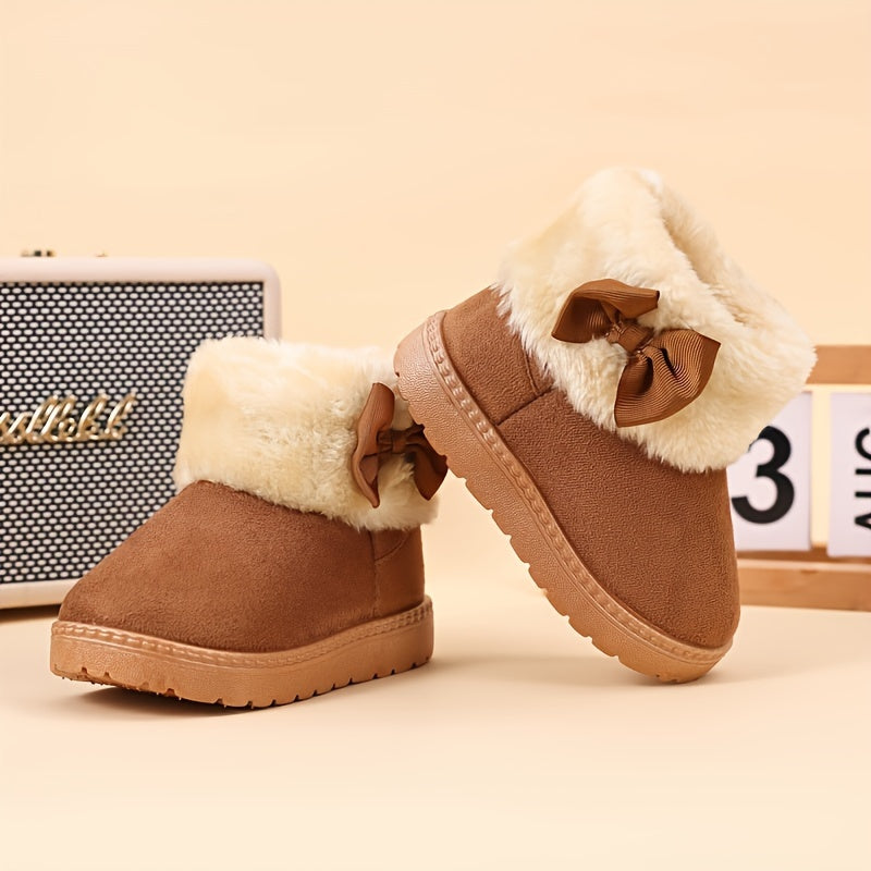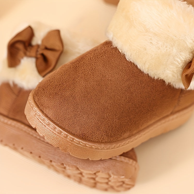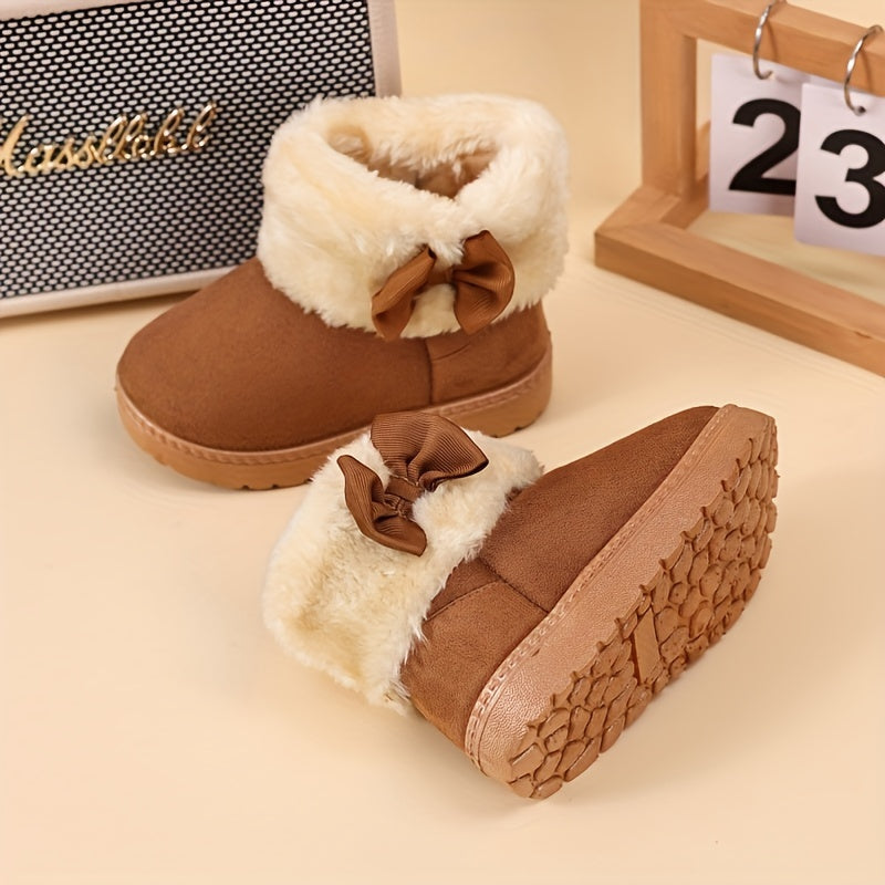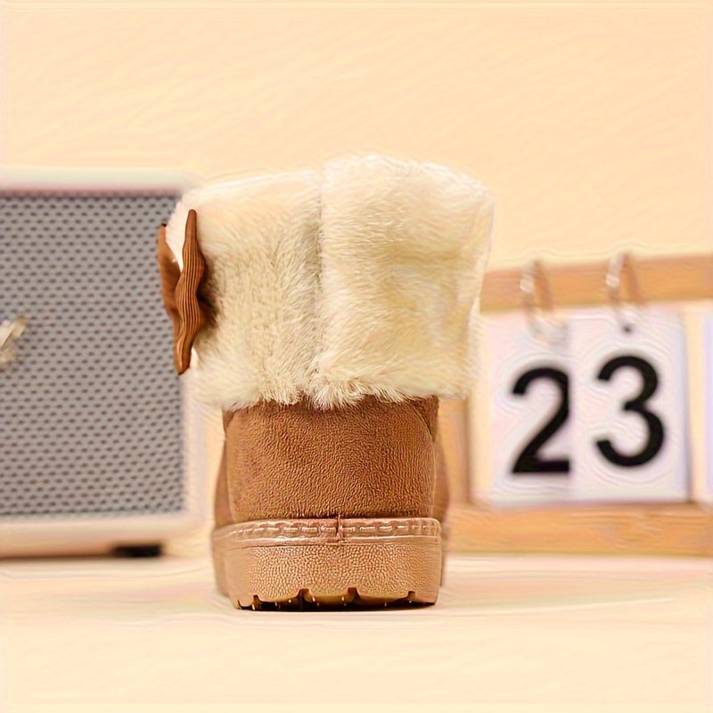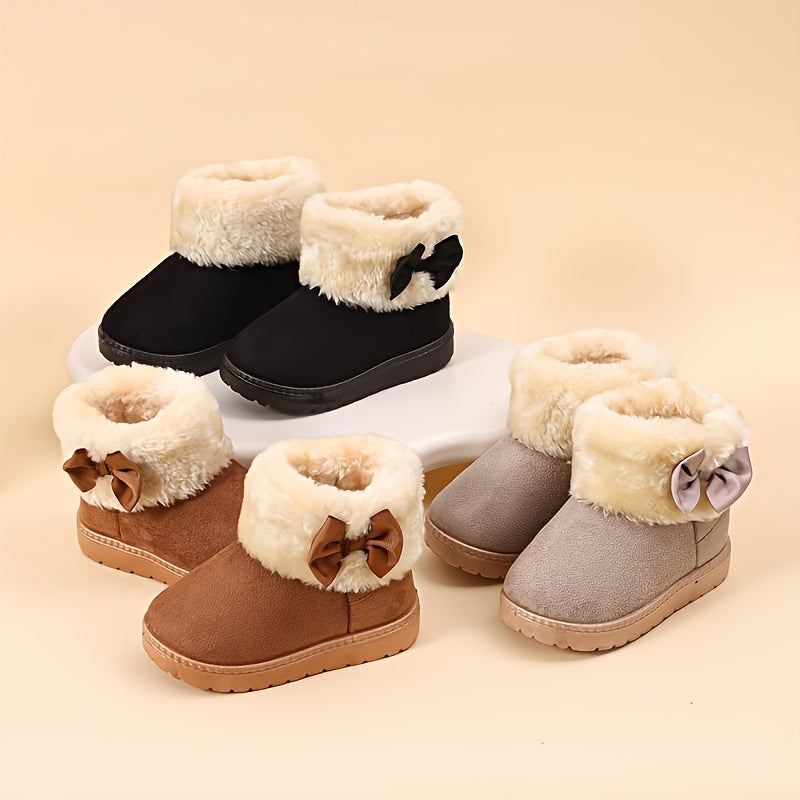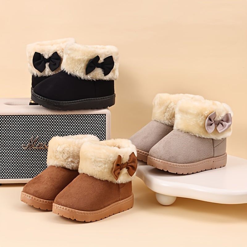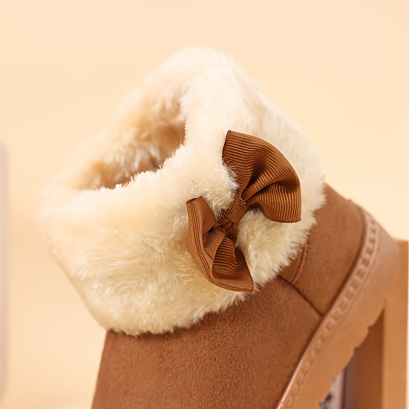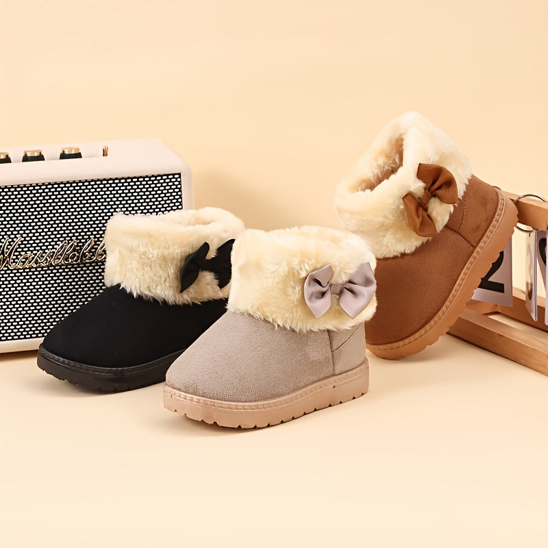 Trendy Cute Bowknot Decor Plus Fleece Snow Boots For Girls