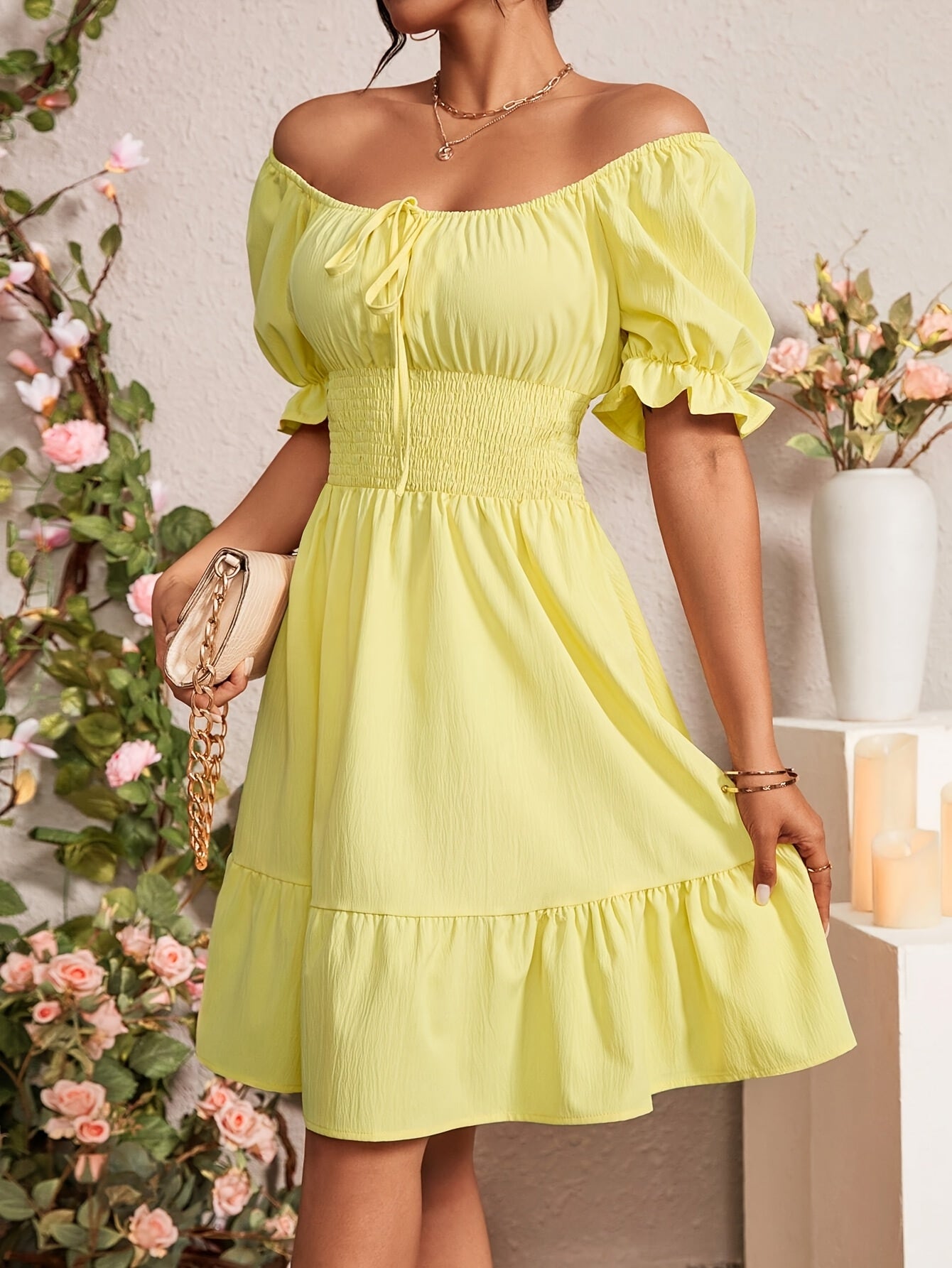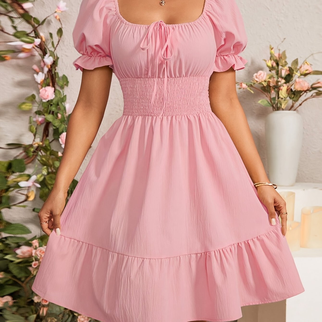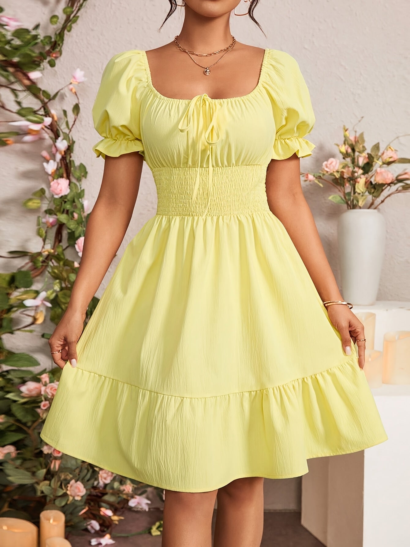 Women's Tie-Back Bubble Sleeve Ruffled Hem Dress